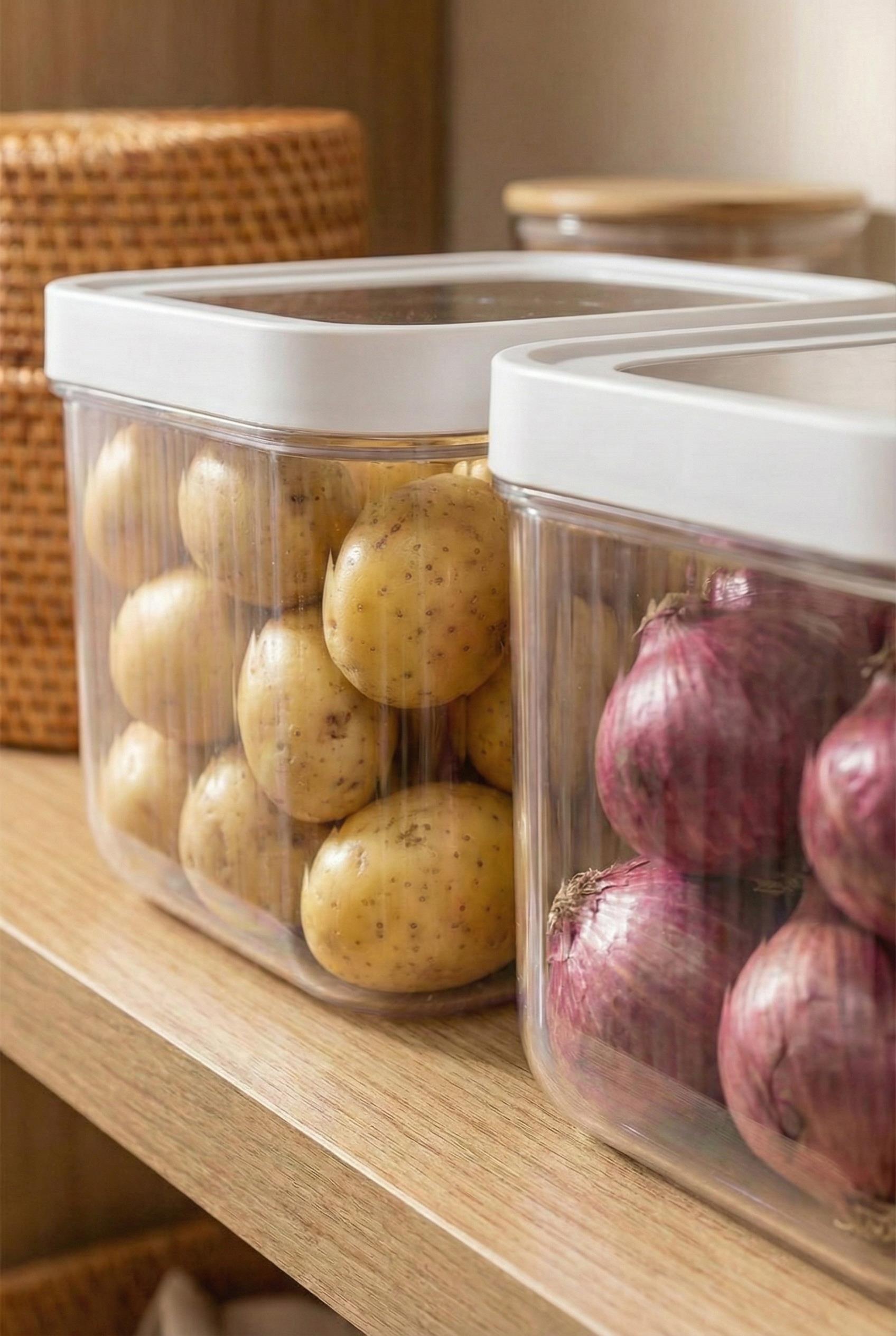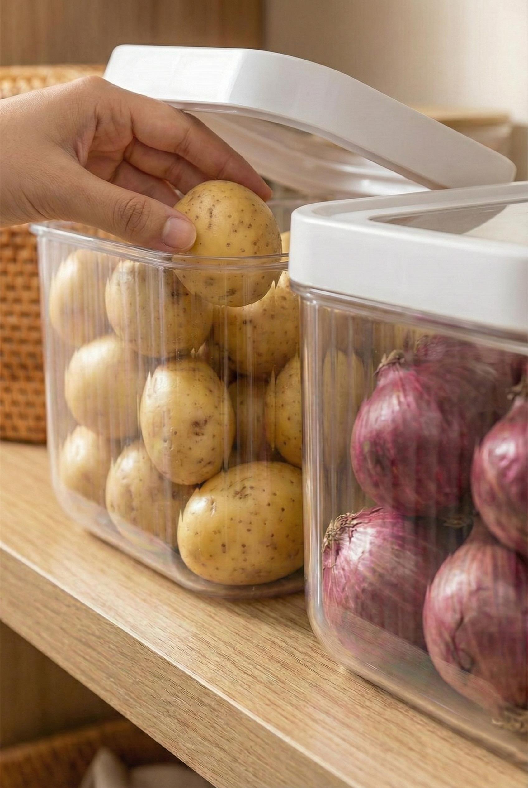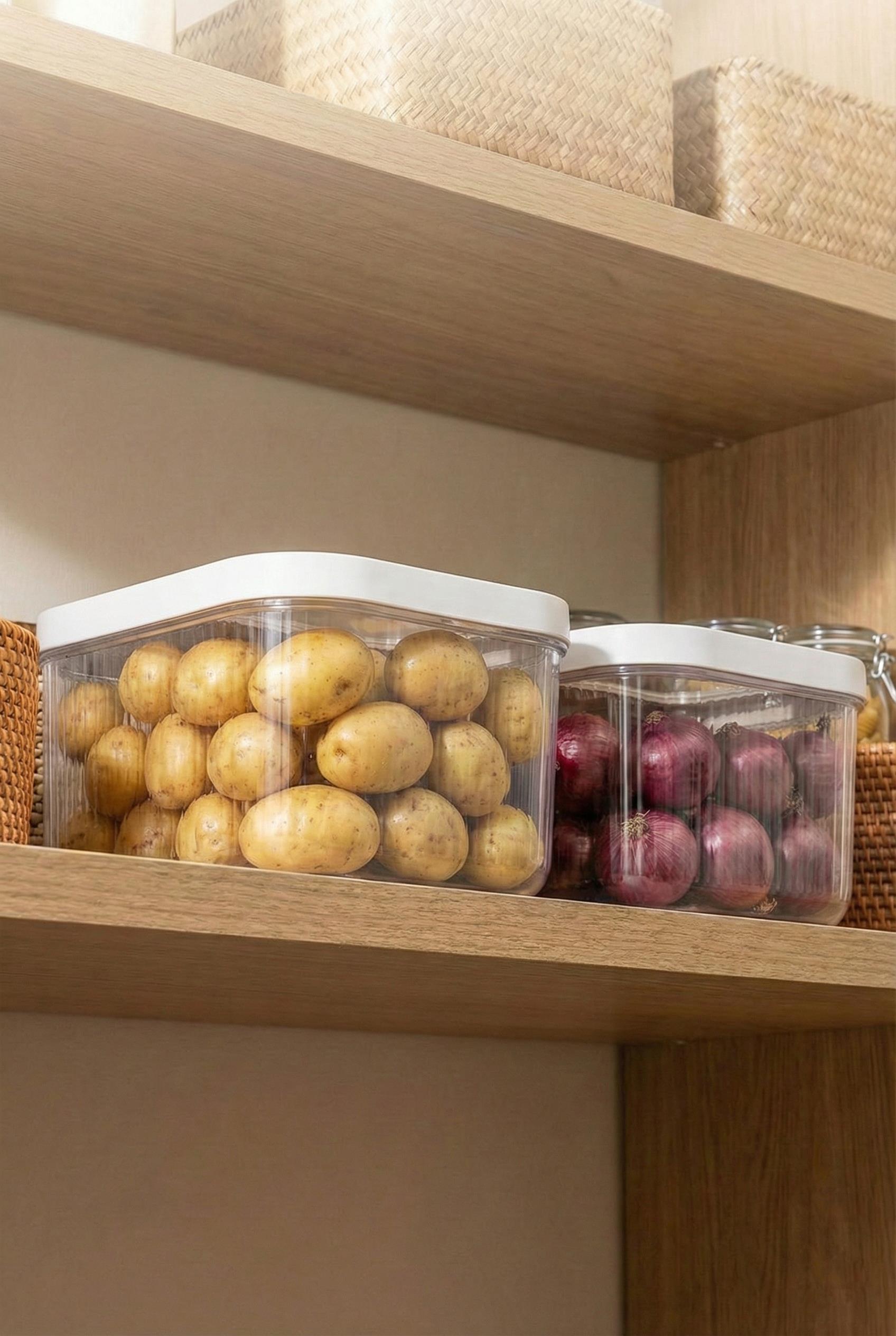 Mutfağınızda sebze ve yüklü erzak yönetimi için tasarlanan bu 12 litrelik dev set, kayar kapak teknolojisi ve şeffaf gövdesiyle patates, soğan ve bakliyat depolamayı modern bir hale getirir.