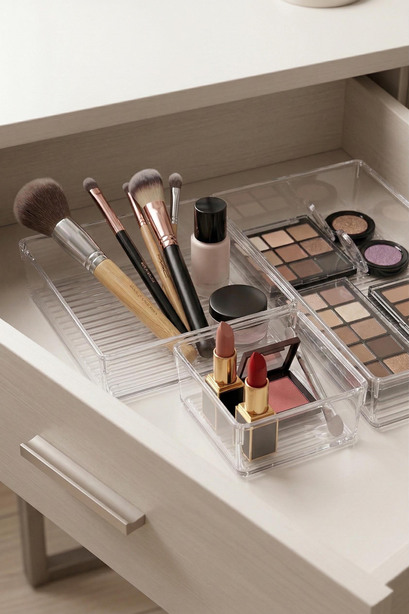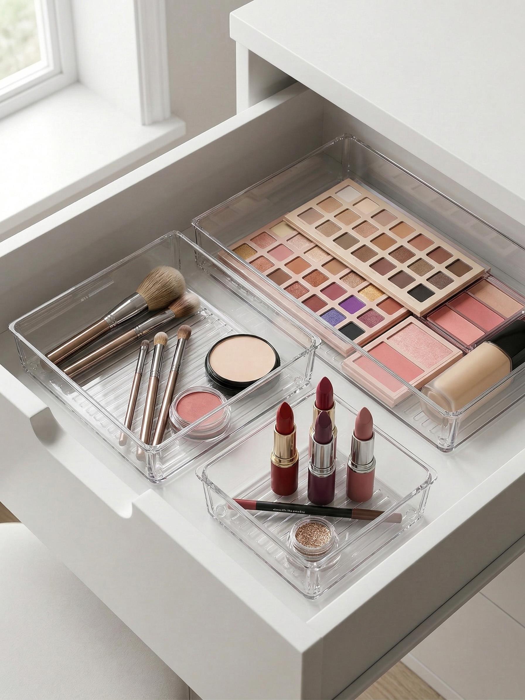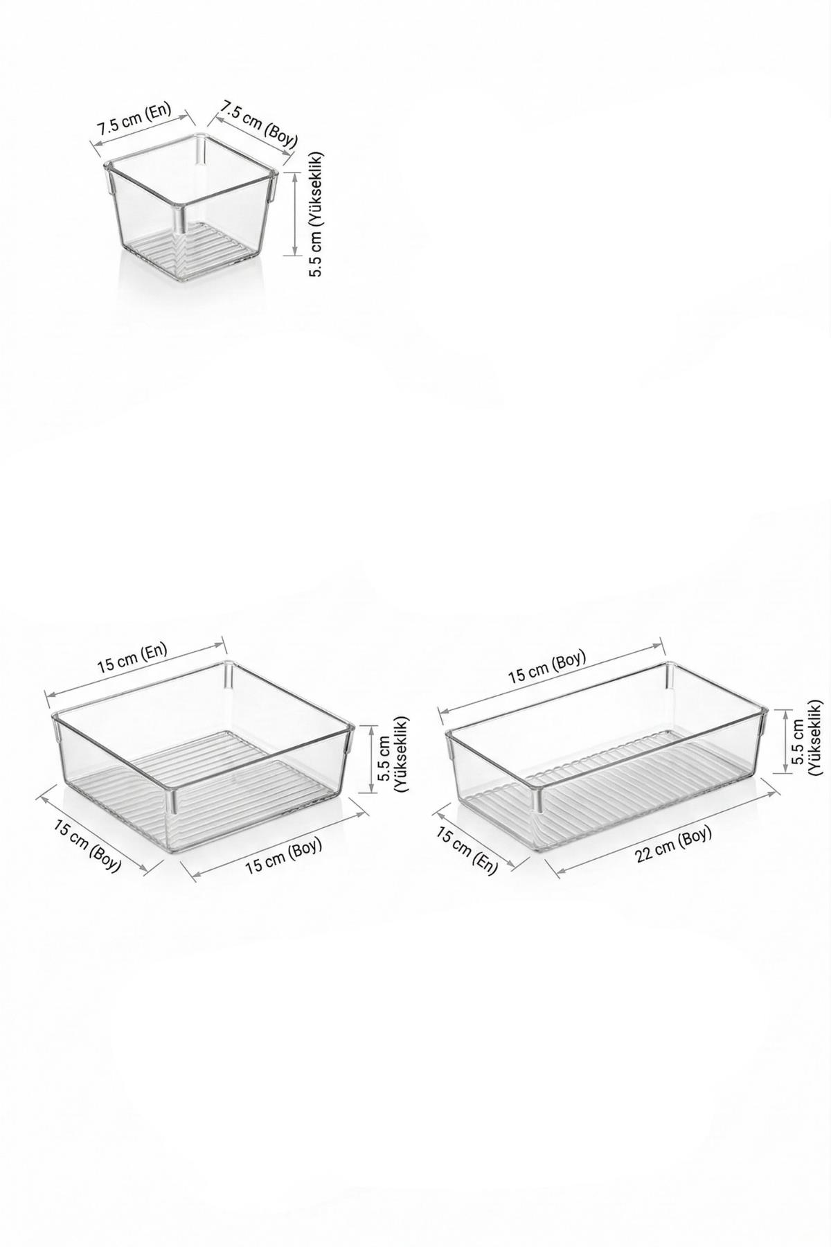 3 Parça Şeffaf Çekmece İçi Makyaj Ve Takı Organizer Seti & Modüler Bölmeli Düzenleyici