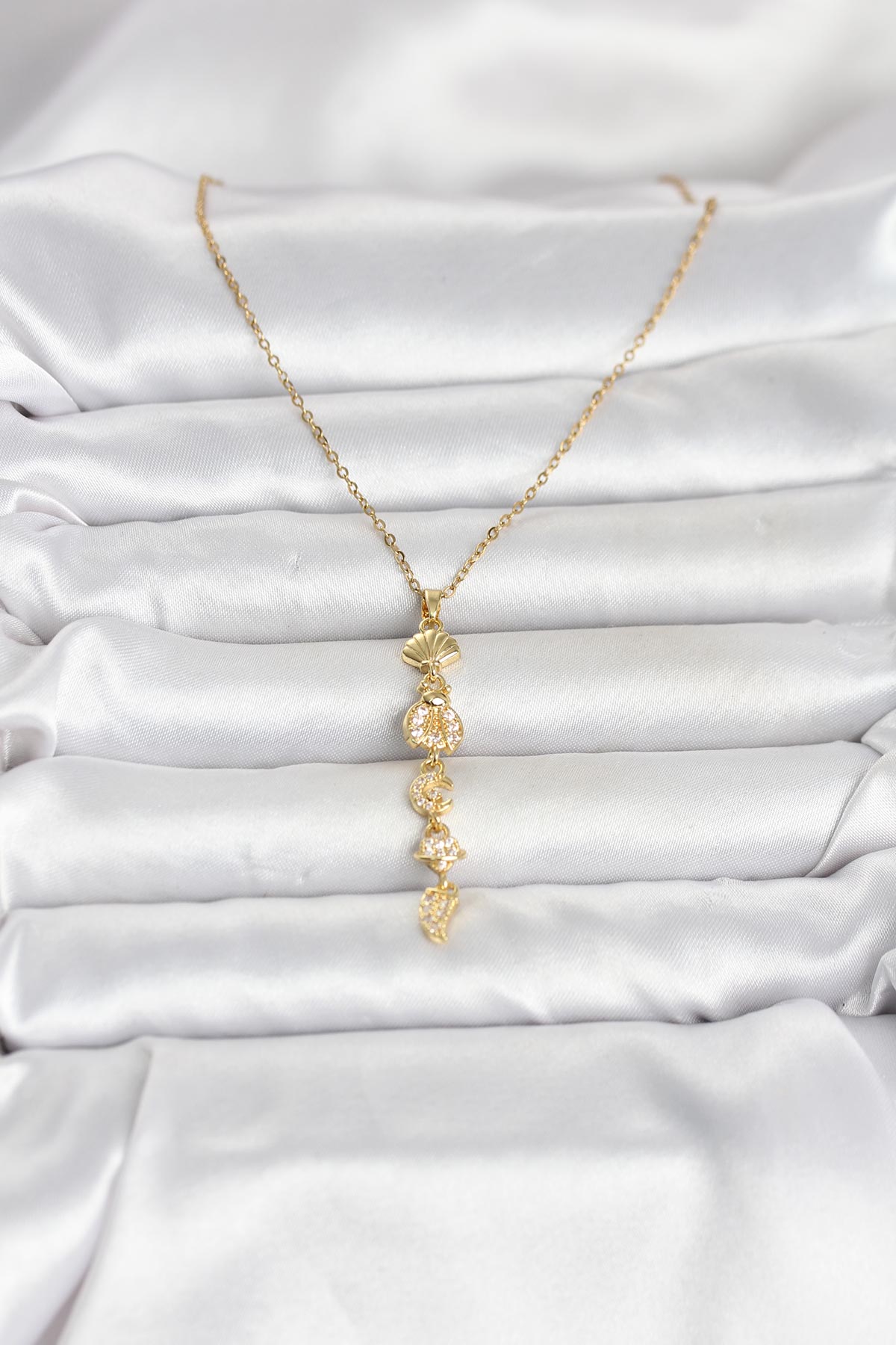 316L Çelik Gold Renk Deniz Temalı Y Model Zirkon Taşlı Kadın Kolye