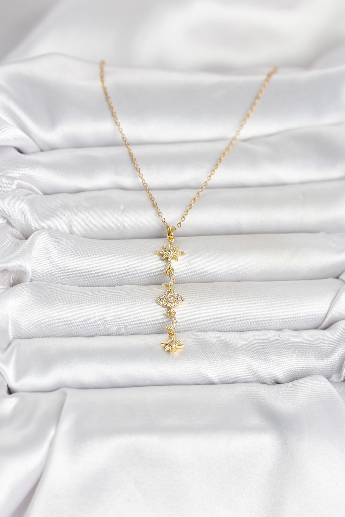 316L Çelik Gold Renk Kutup Yıldızı Y Model Zirkon Taşlı Kadın Kolye