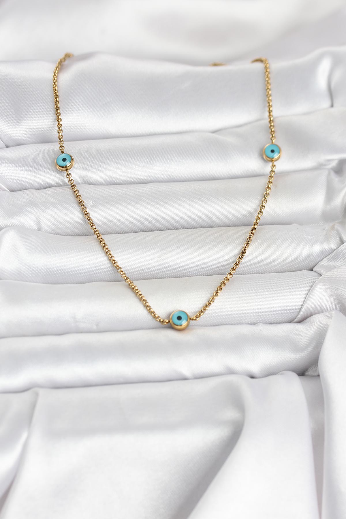 316L Çelik Gold Renk Nazarlı Model Kadın Kolye