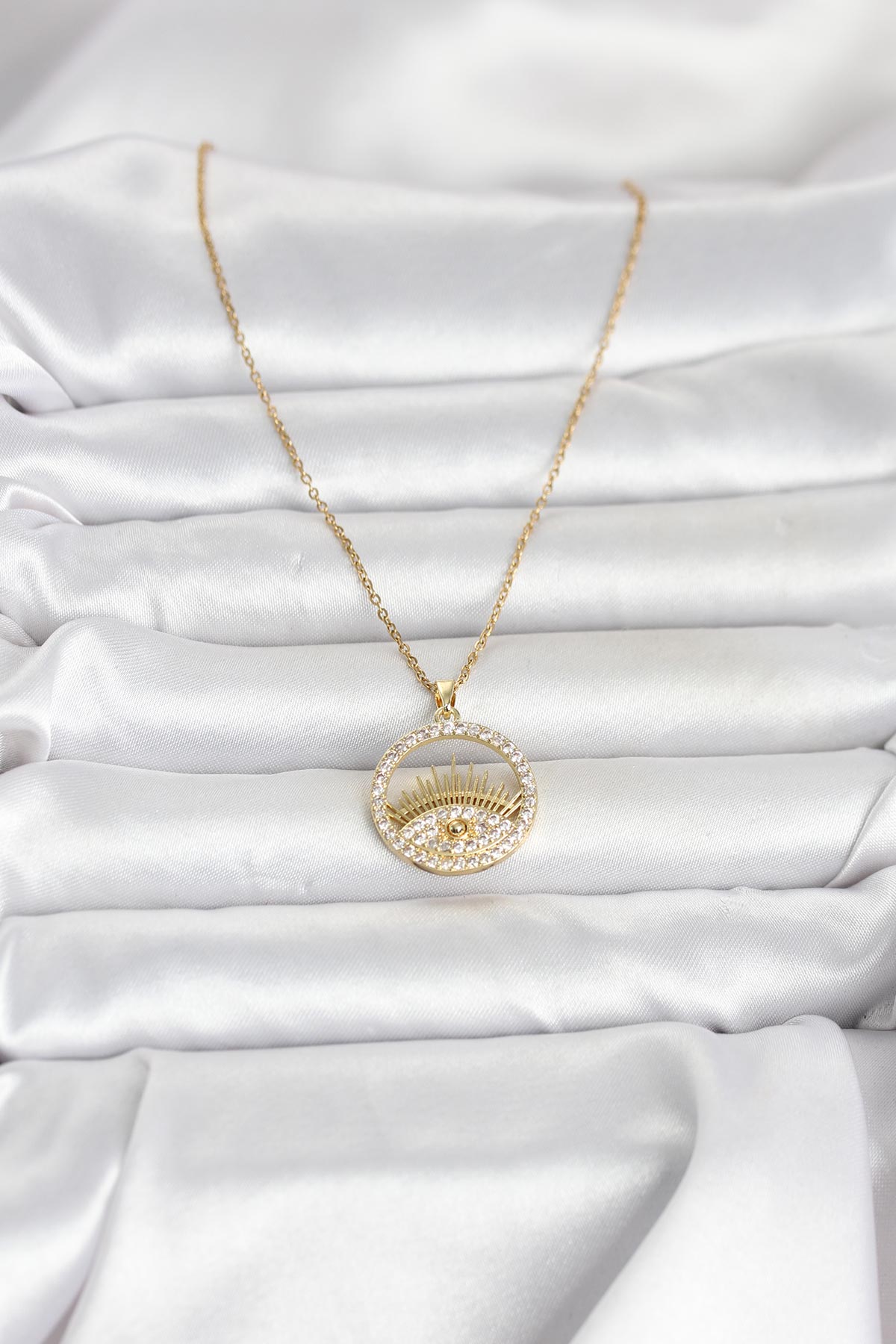 316L Çelik Gold Renk Zirkon Taşlı Göz Model Kadın Kolye