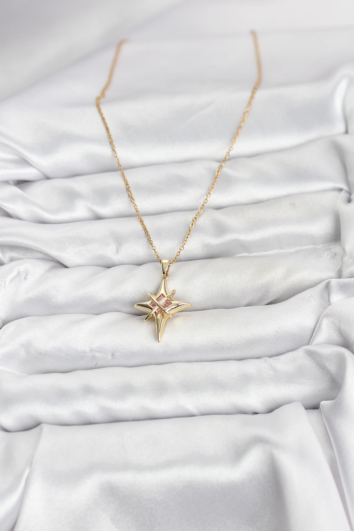 316L Çelik Gold Renk Zirkon Taşlı Kutup Yıldızı Model Kadın Kolye