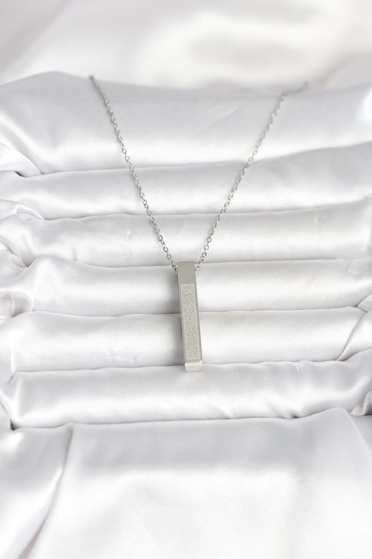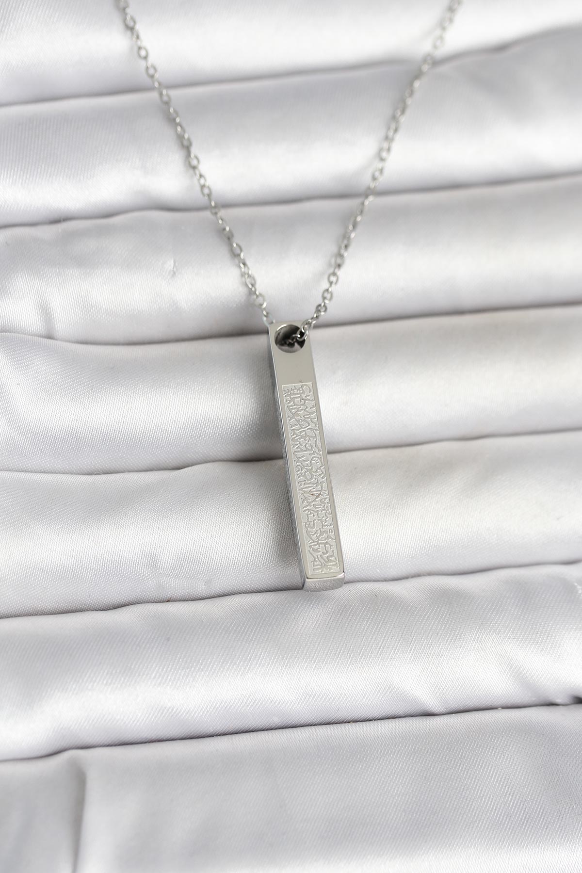 316L Çelik Gümüş Renk Ayetel Kürsi Yazılı Bar Çubuk Kolye