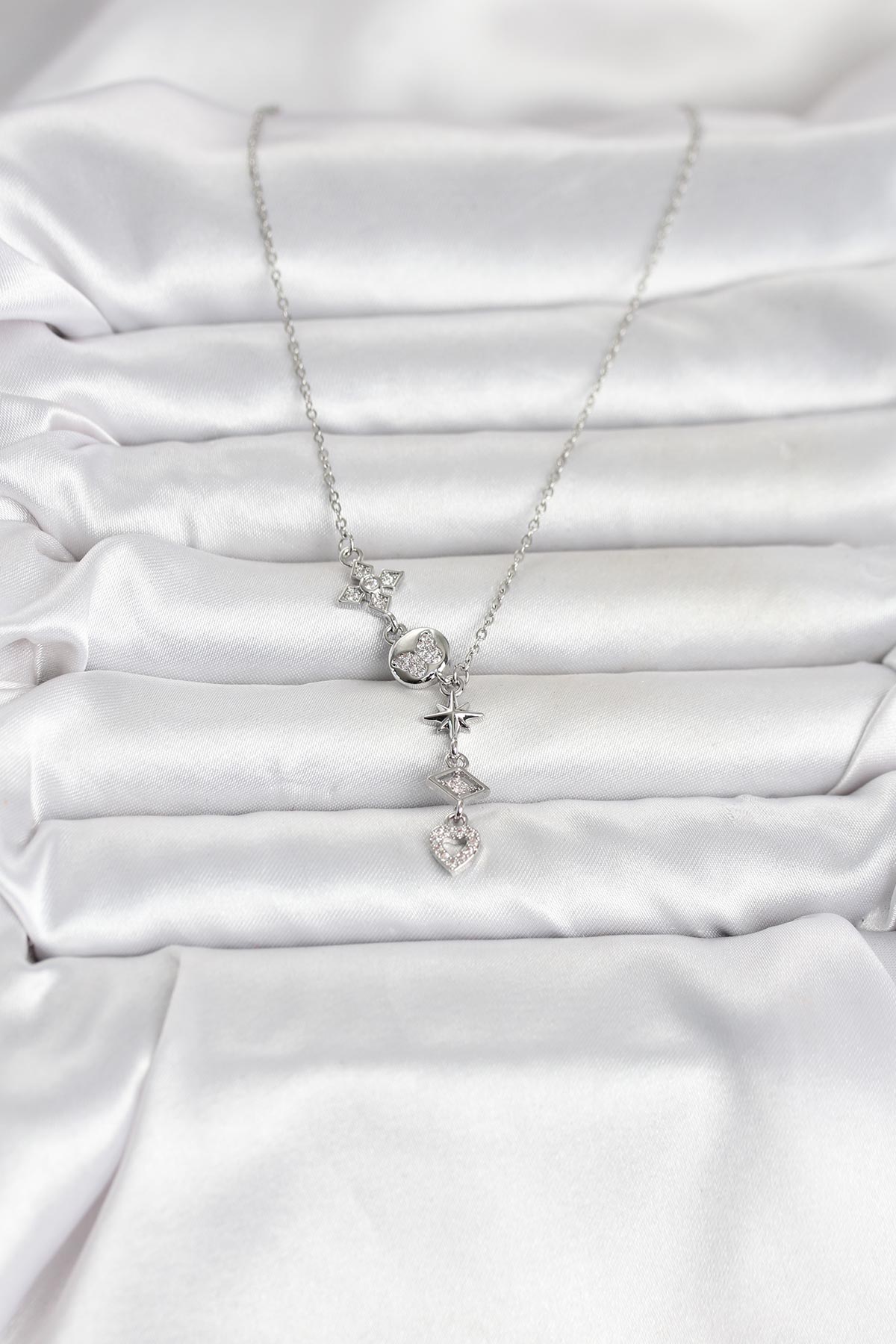 316L Çelik Gümüş Renk Zirkon Taşlı Y Kadın Kolye