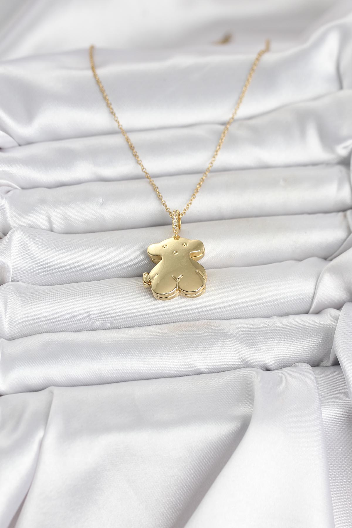 316L Çelik Zincir Gold Renk Ayıcık Model Açılabilir Kadın Kolye