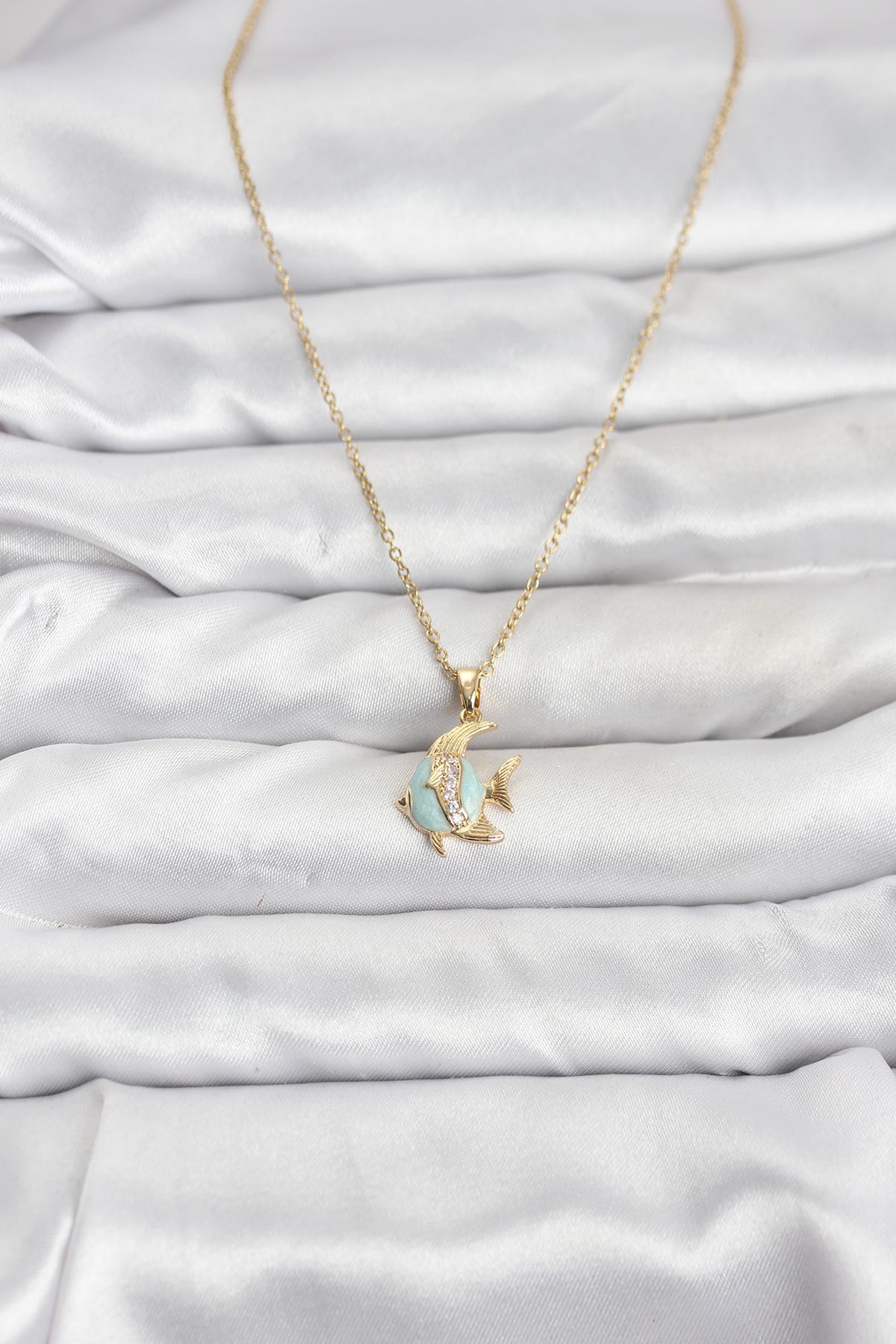 316L Çelik Zincir Gold Renk Balık Model Zirkon Taşlı Kadın Kolye