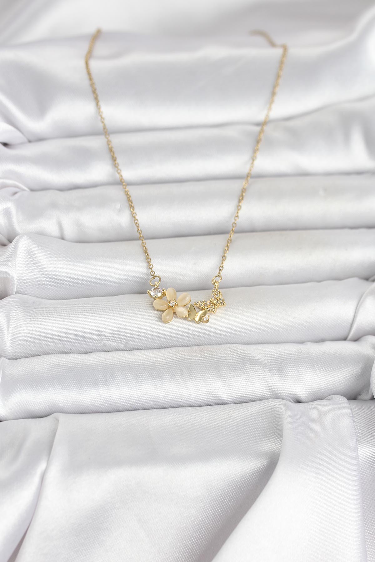 316L Çelik Zincir Gold Renk Çiçek ve Kelebek Model Kadın Kolye