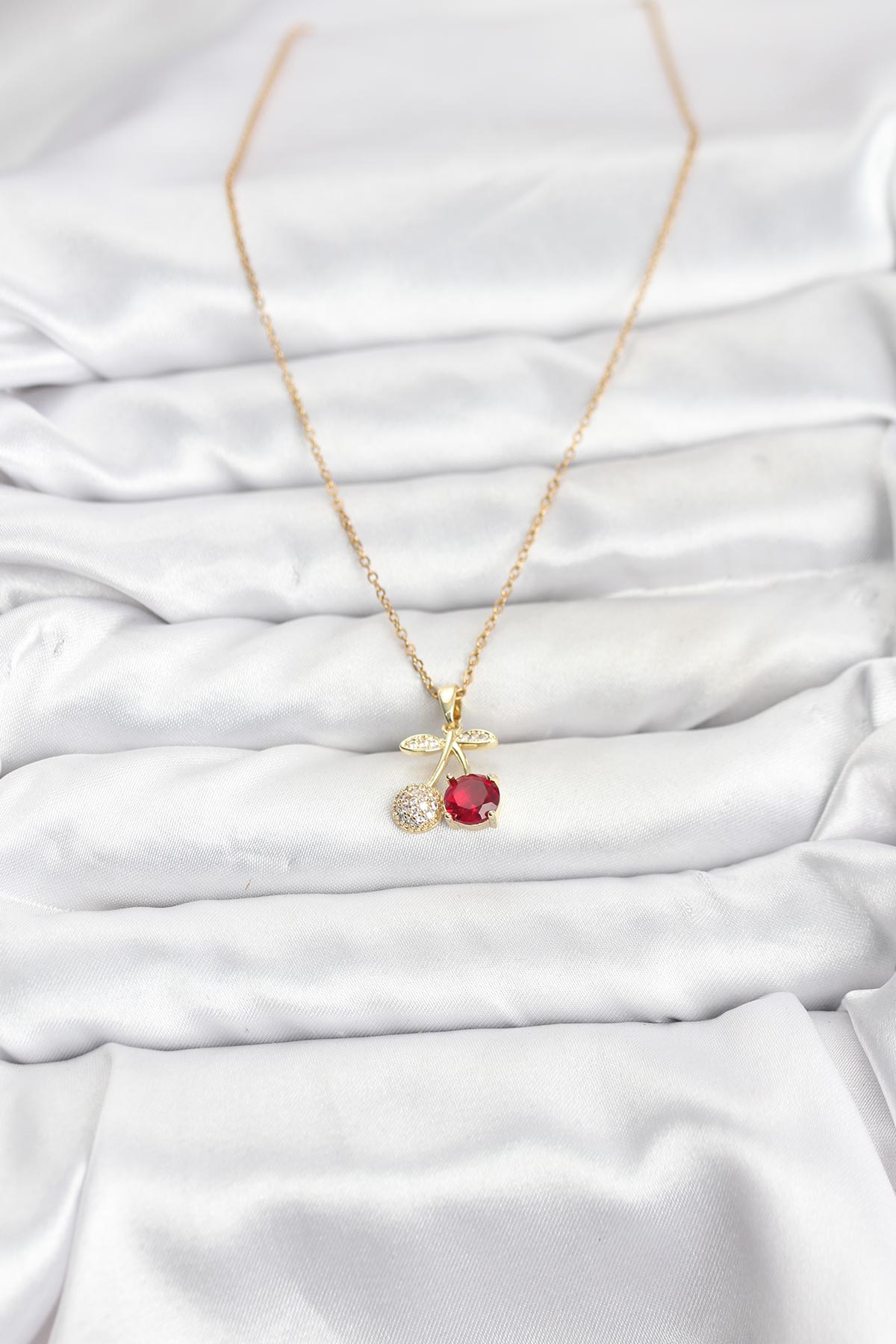 316L Çelik Zincir Gold Renk Kiraz Model Zirkon Taşlı Kadın Kolye