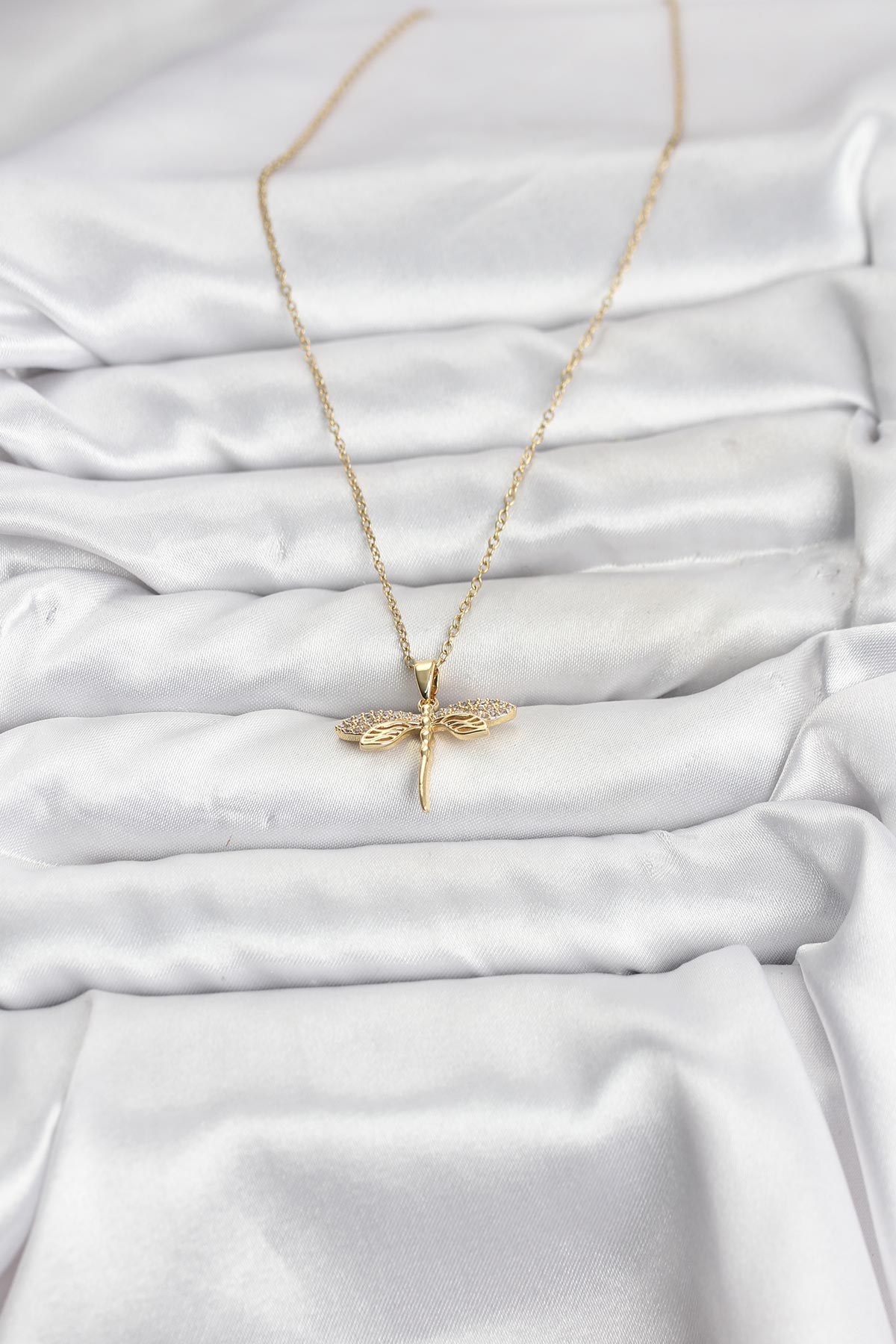 316L Çelik Zincir Gold Renk Yusufçuk Model Zirkon Taşlı Kadın Kolye