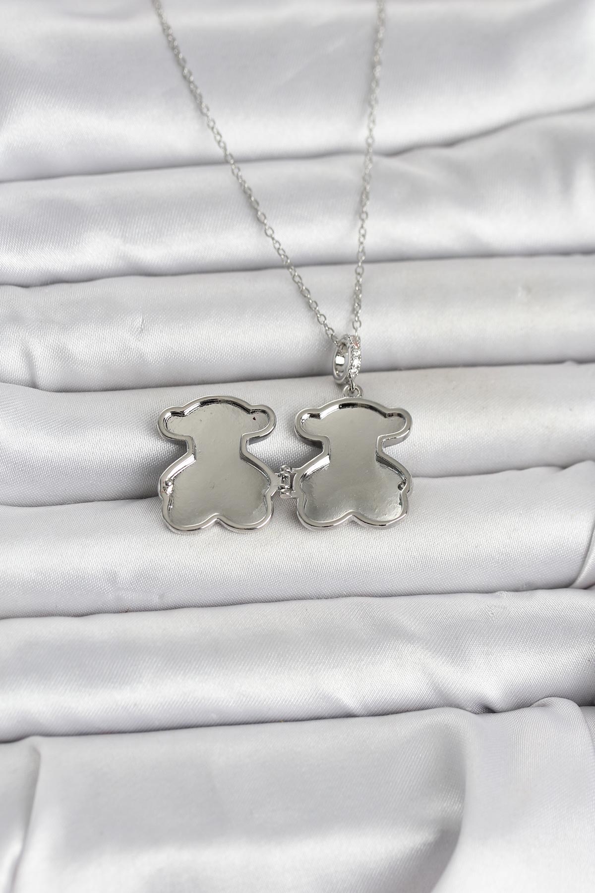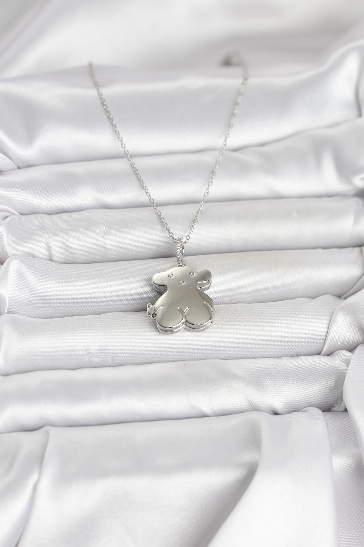 316L Çelik Zincir Gümüş Renk Ayıcık Model Açılabilir Kadın Kolye