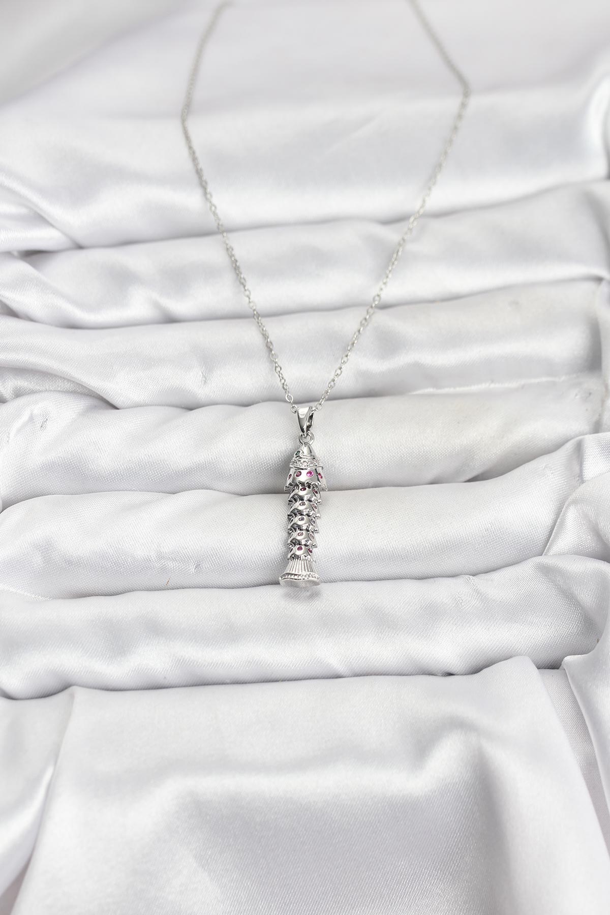 316L Çelik Zincir Gümüş Renk Balık Model Zirkon Taşlı Kadın Kolye