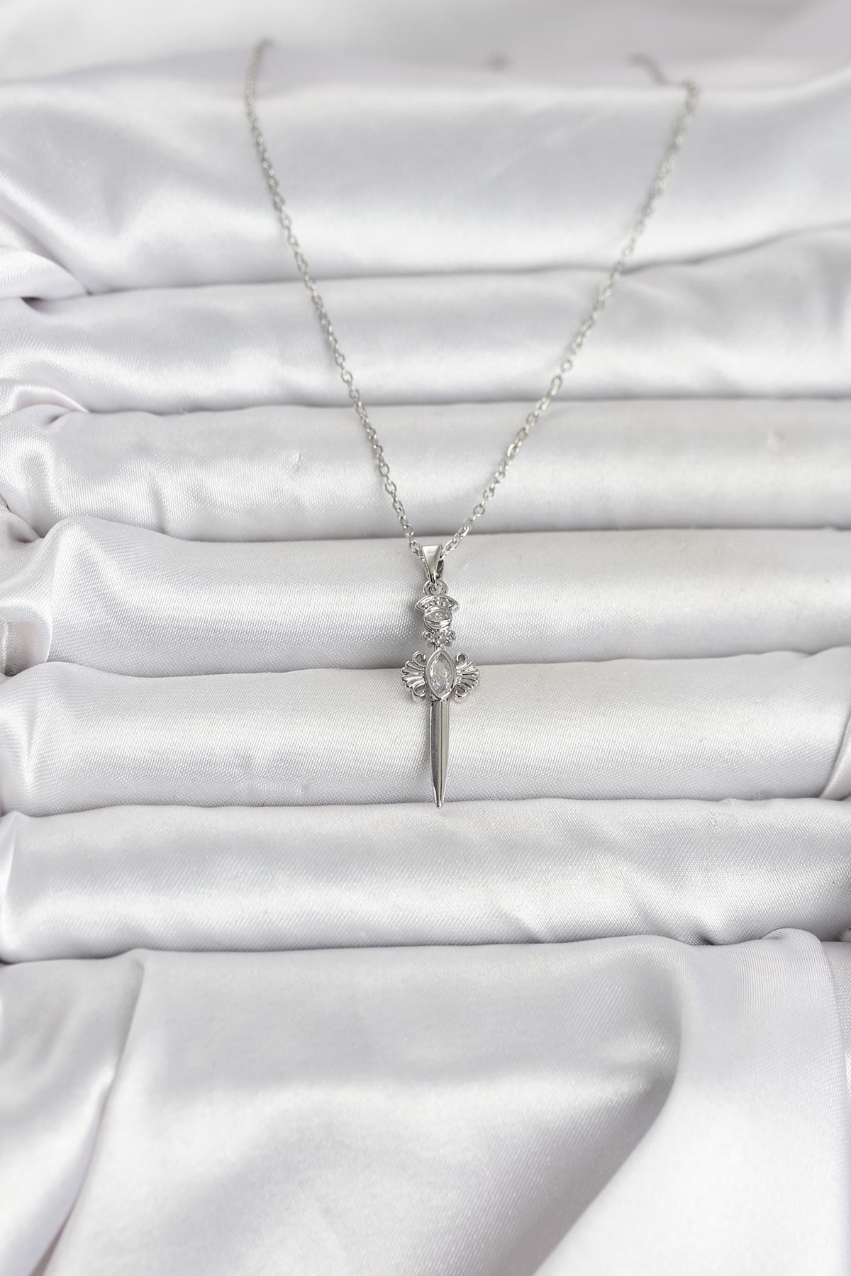 316L Çelik Zincir Gümüş Renk Kılıç Model Kadın Kolye