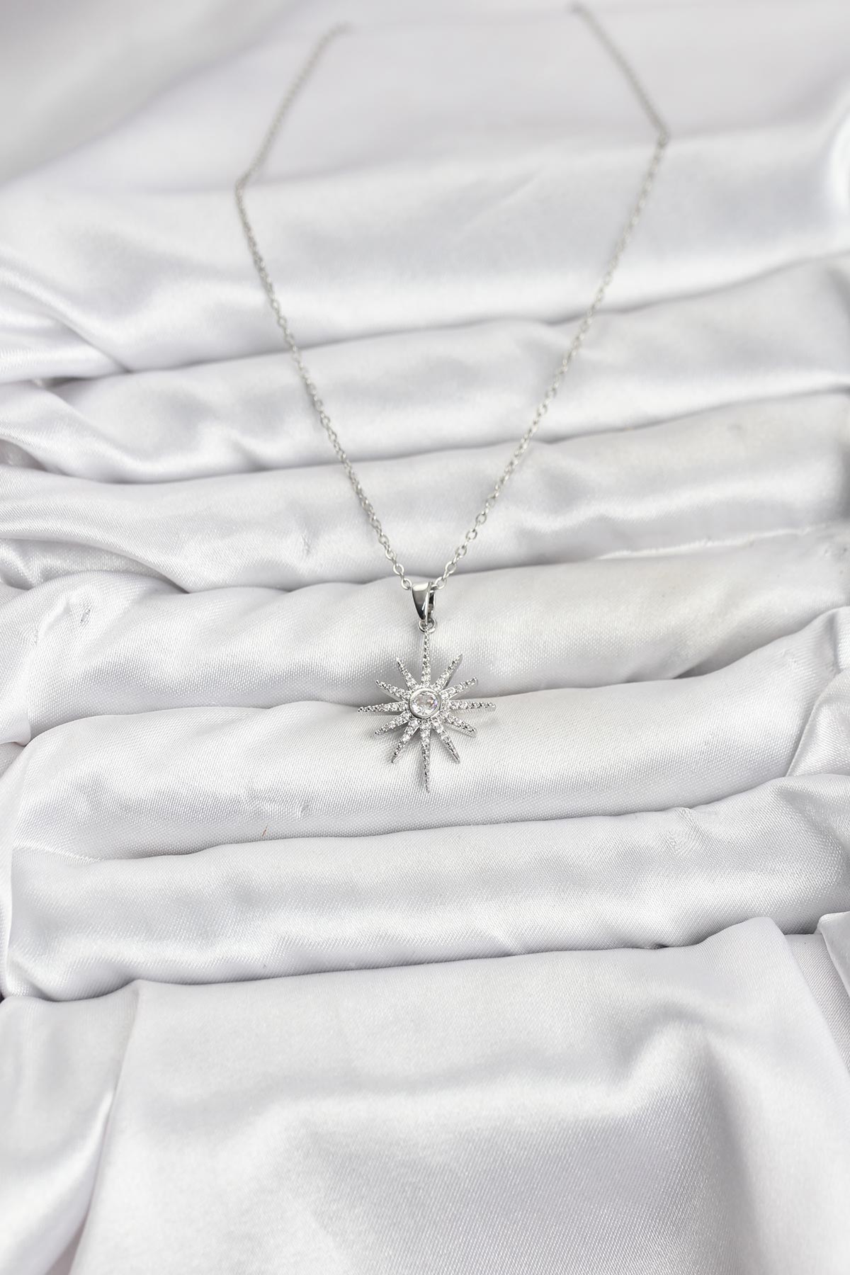 316L Çelik Zincir Gümüş Renk Kutup Yıldızı Model Zirkon Taşlı Kadın Kolye