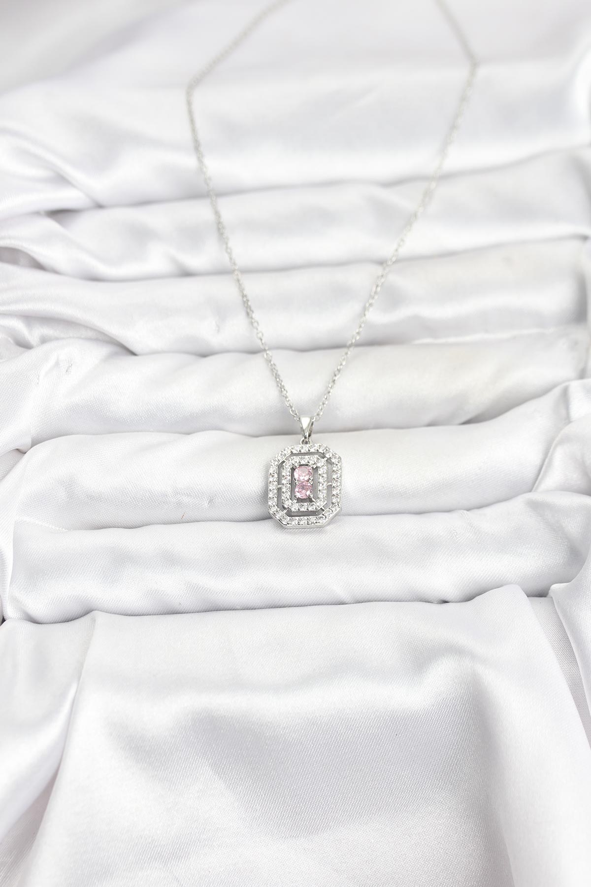 316L Çelik Zincir Gümüş Renk Plaka Model Zirkon Taşlı Kadın Kolye