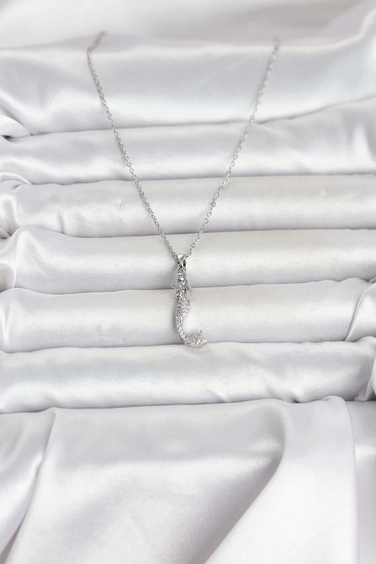 316L Çelik Zincir Gümüş Renk Zirkon Taşlı Deniz Kızı Model Kadın Kolye