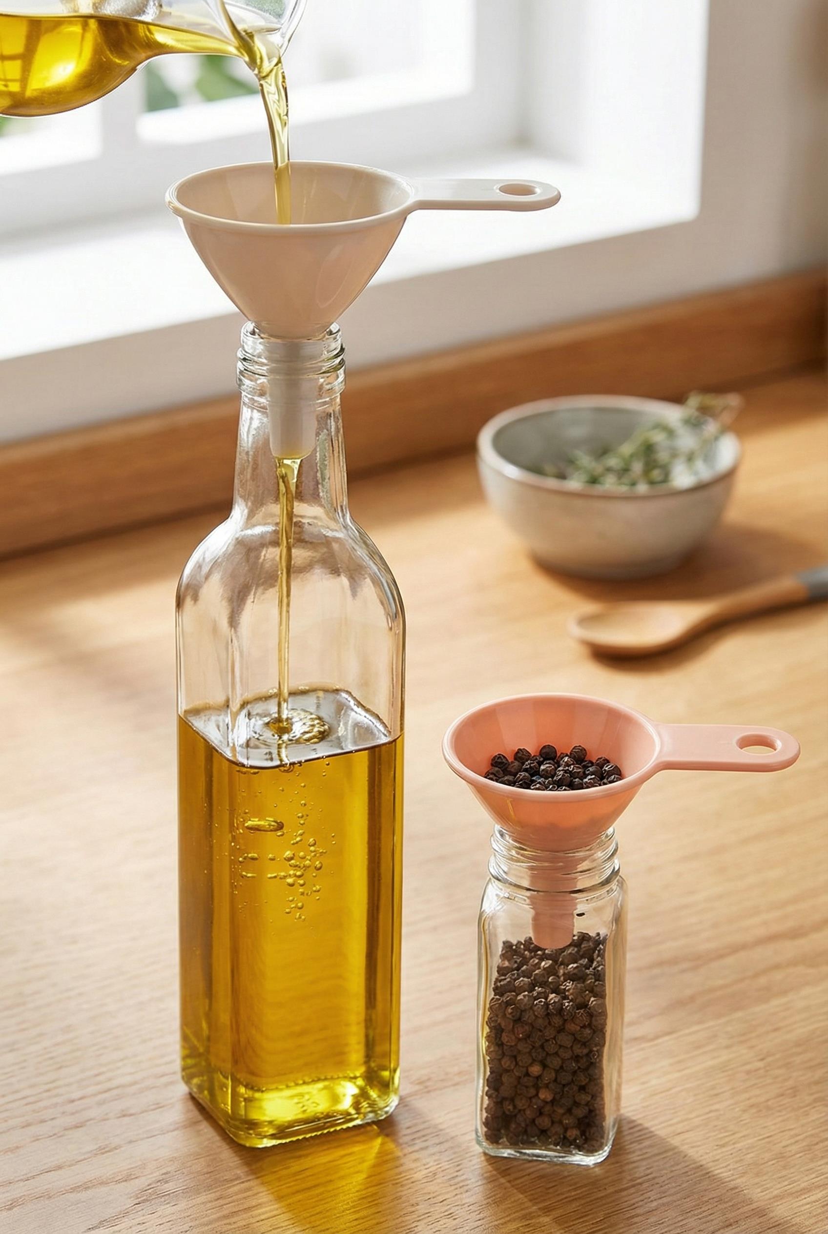 Mutfakta sıvı aktarımı ve kavanoz doldurma işlemlerini zahmetsiz hale getiren bu 3'lü mini huni seti, farklı boyutlarıyla her türlü şişe ve kaba tam uyum sağlar.