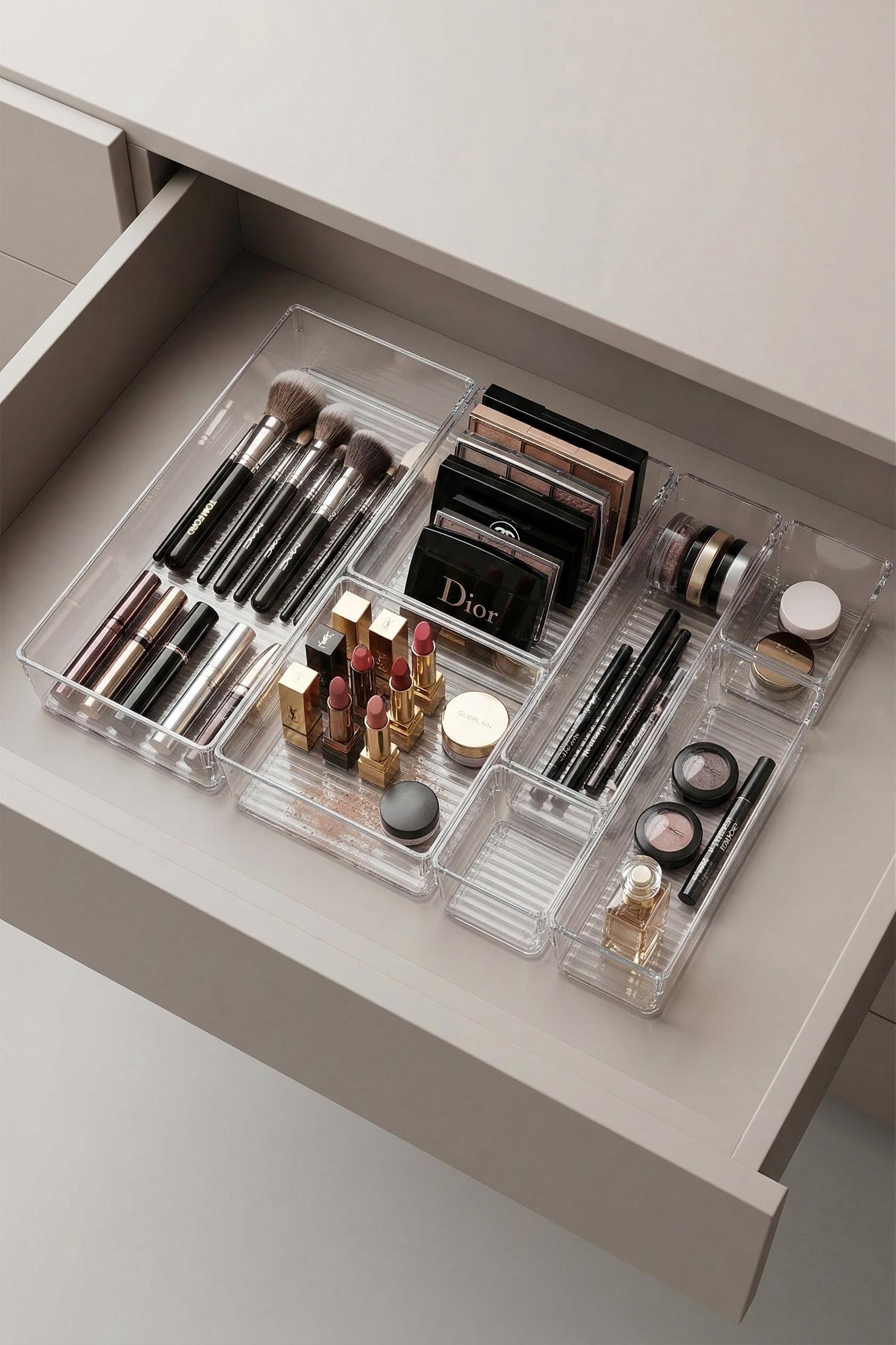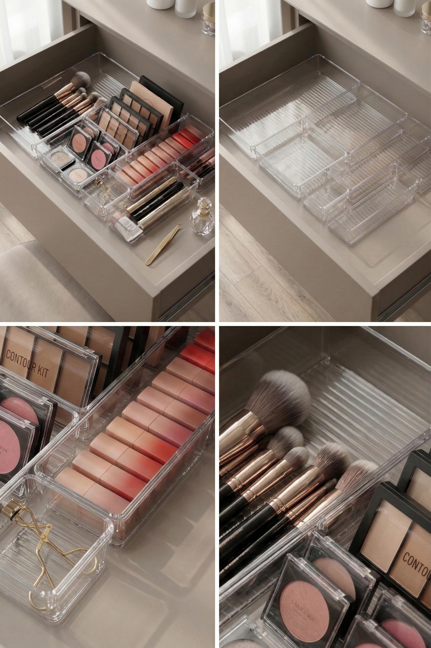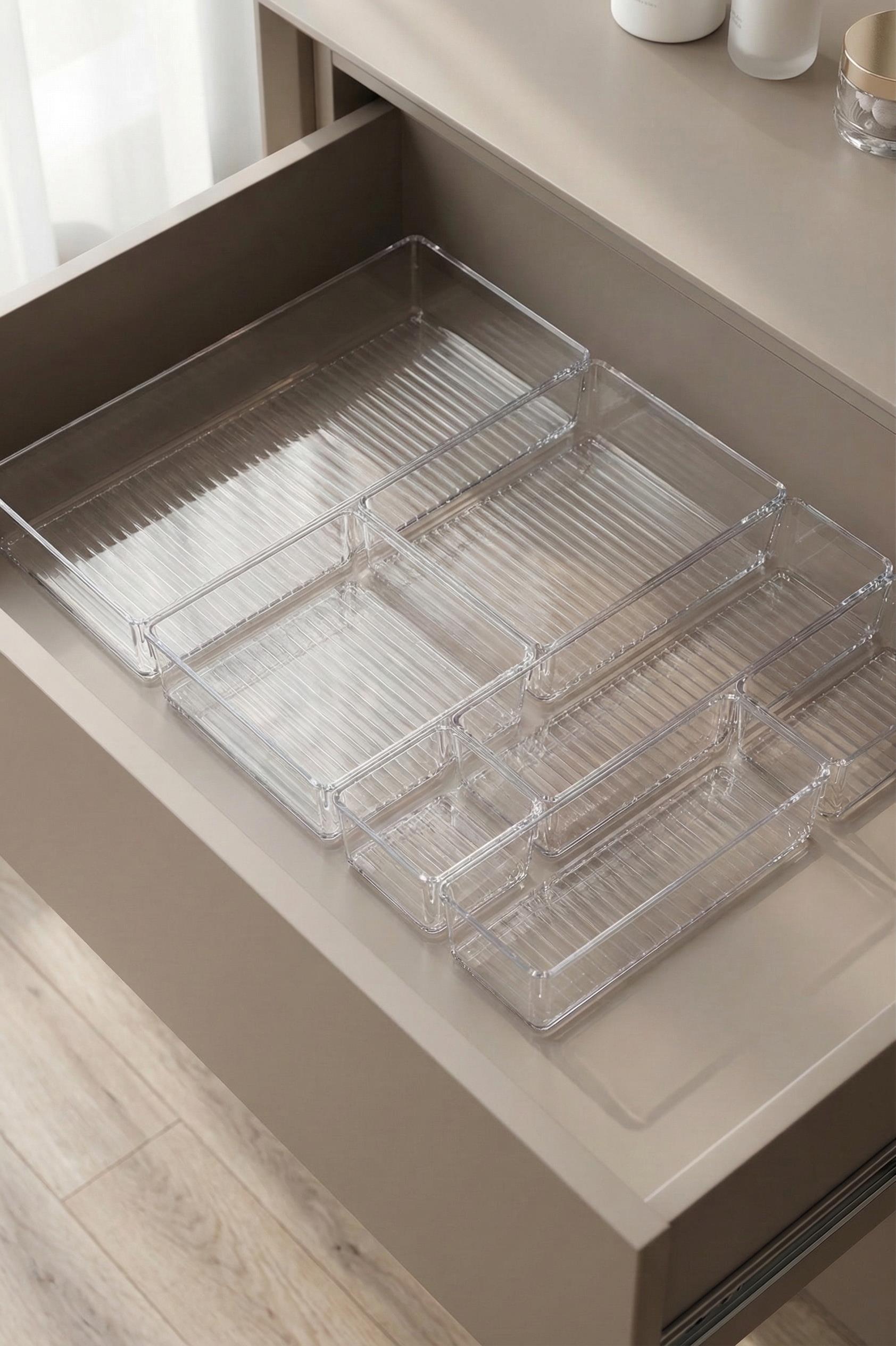 7 Parça Şeffaf Çekmece İçi Makyaj Ve Takı Organizer Seti & Modüler Bölmeli Düzenleyici