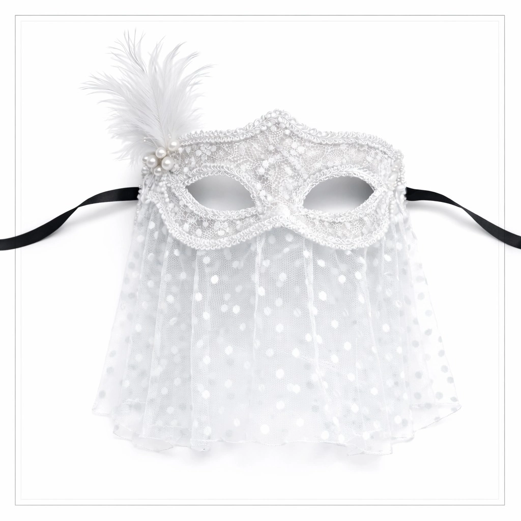 Zarafet ve romantik bir görünüm arayanlar için tasarlanan Beyaz Dantel Tüllü Peçeli Parti Maskesi, şıklığı ve detaylarıyla öne çıkar.