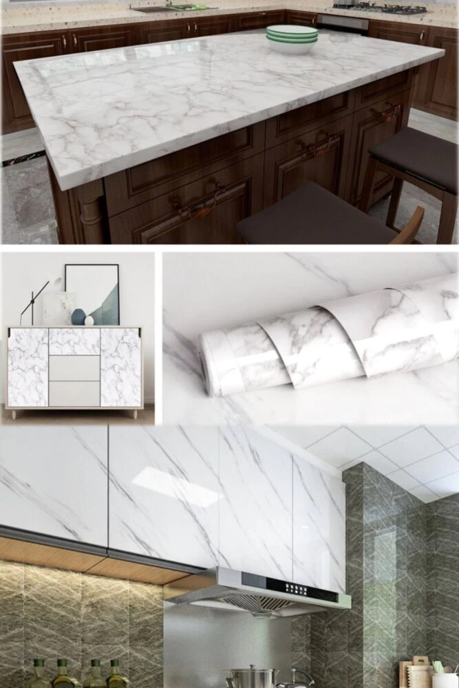 Beyaz Mermer Desenli Yapışkanlı Tezgah Folyosu (3 Mt.x 60 Cm)