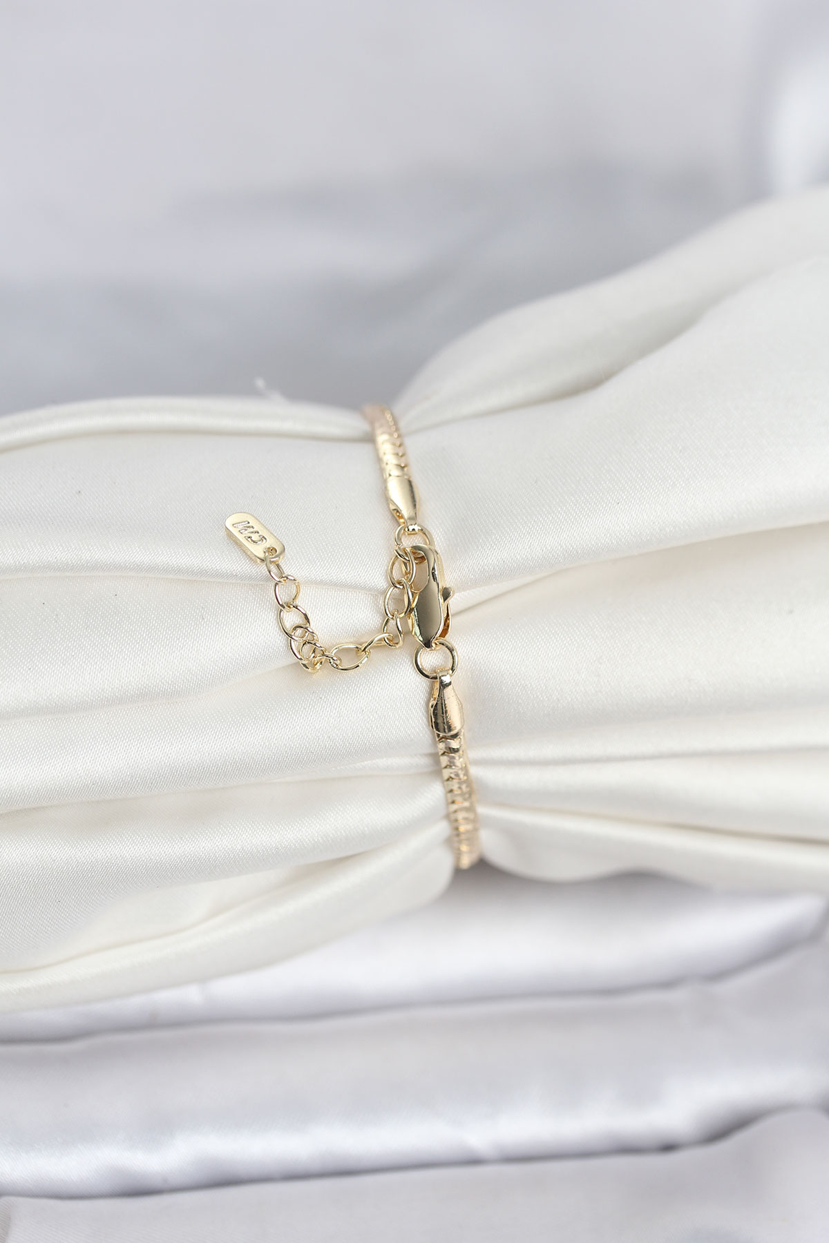 CM 14K Gold Renk Yassı Zincir Model Kadın Bileklik