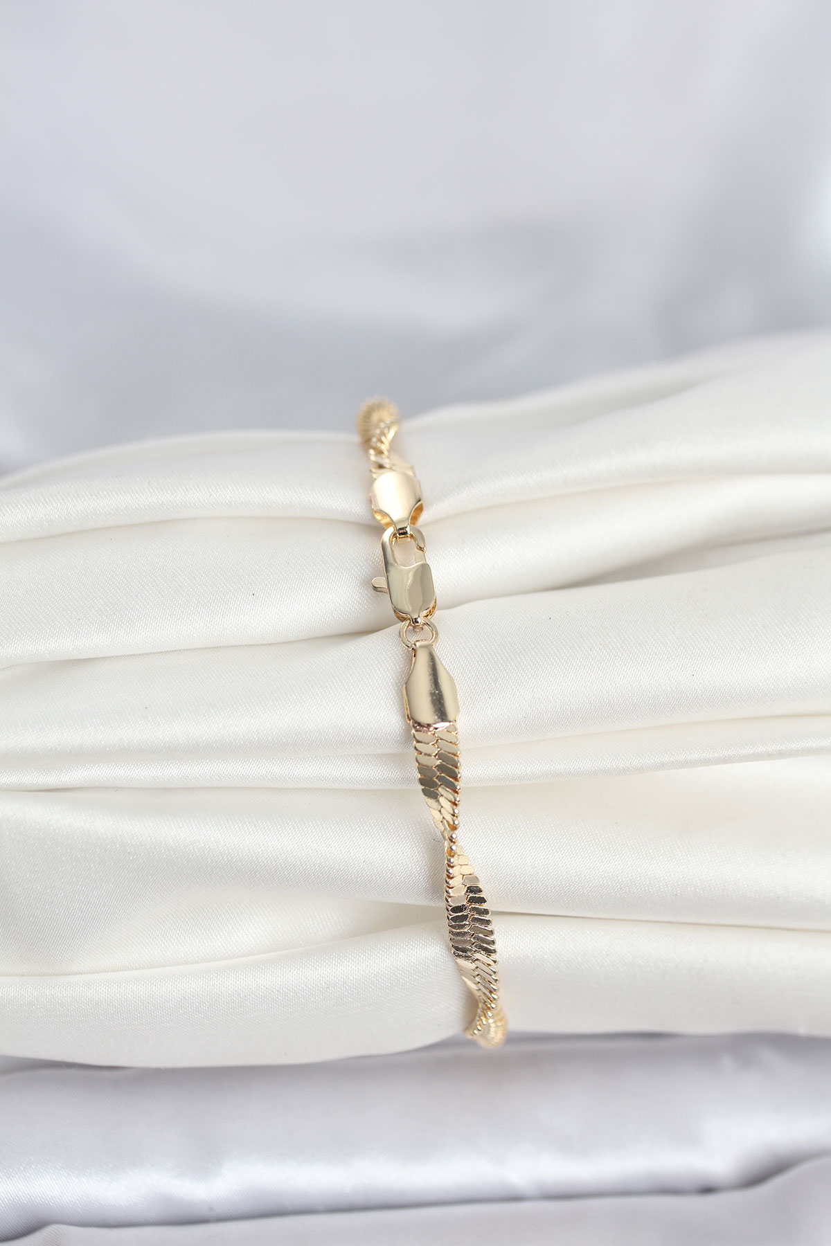 CM 14K Gold Renk Zincir Kalın Yassı Ezme Burgu Model Kadın Bileklik