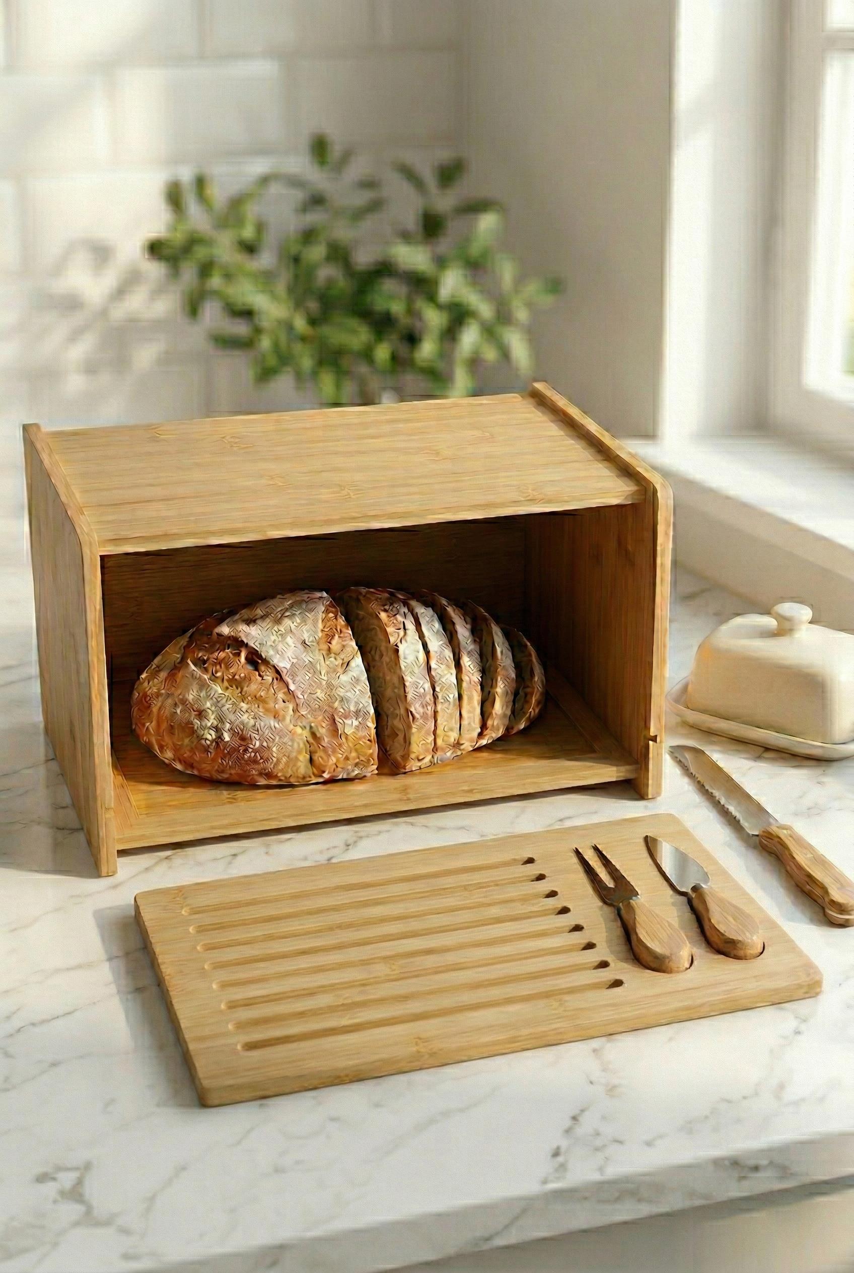 Hamur işlerinizin tazeliğini ilk günkü gibi korumak için tasarlanan bu doğal bambu ekmek dolabı, mutfağınıza dekoratif bir şıklık ve düzen kazandırır.