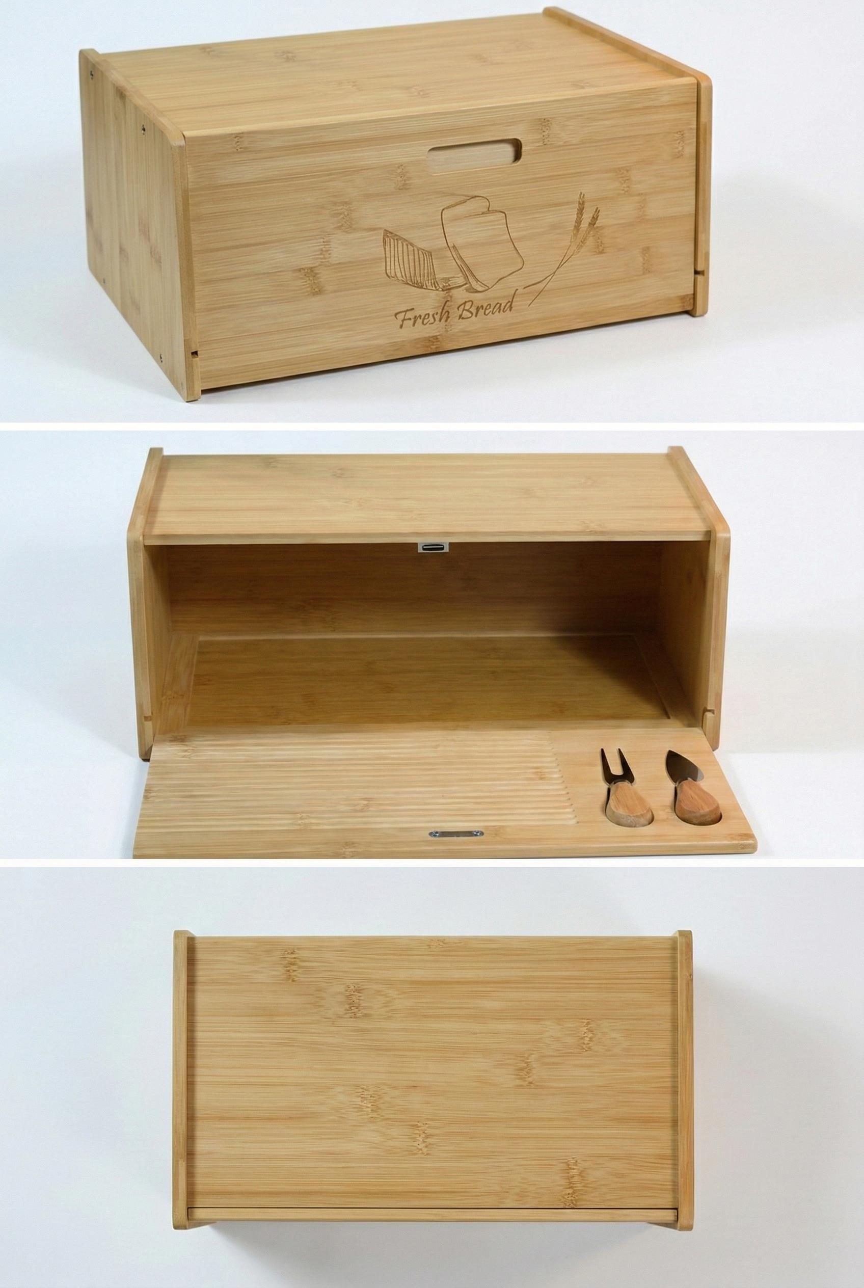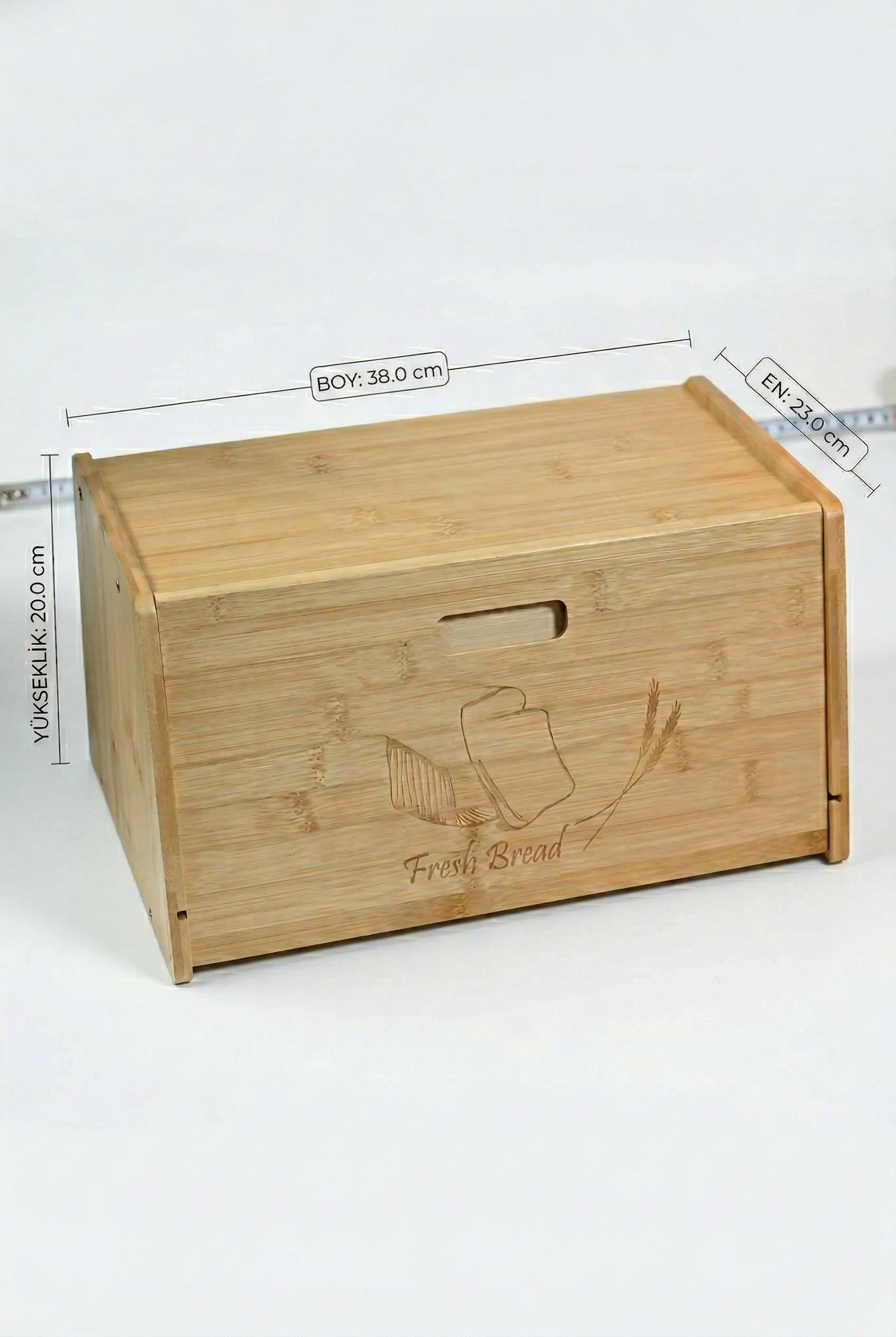 Doğal Bambu Kapaklı Ekmek Kutusu & Doğal Bambu Ekmek Dolabı (23x38x20 cm)