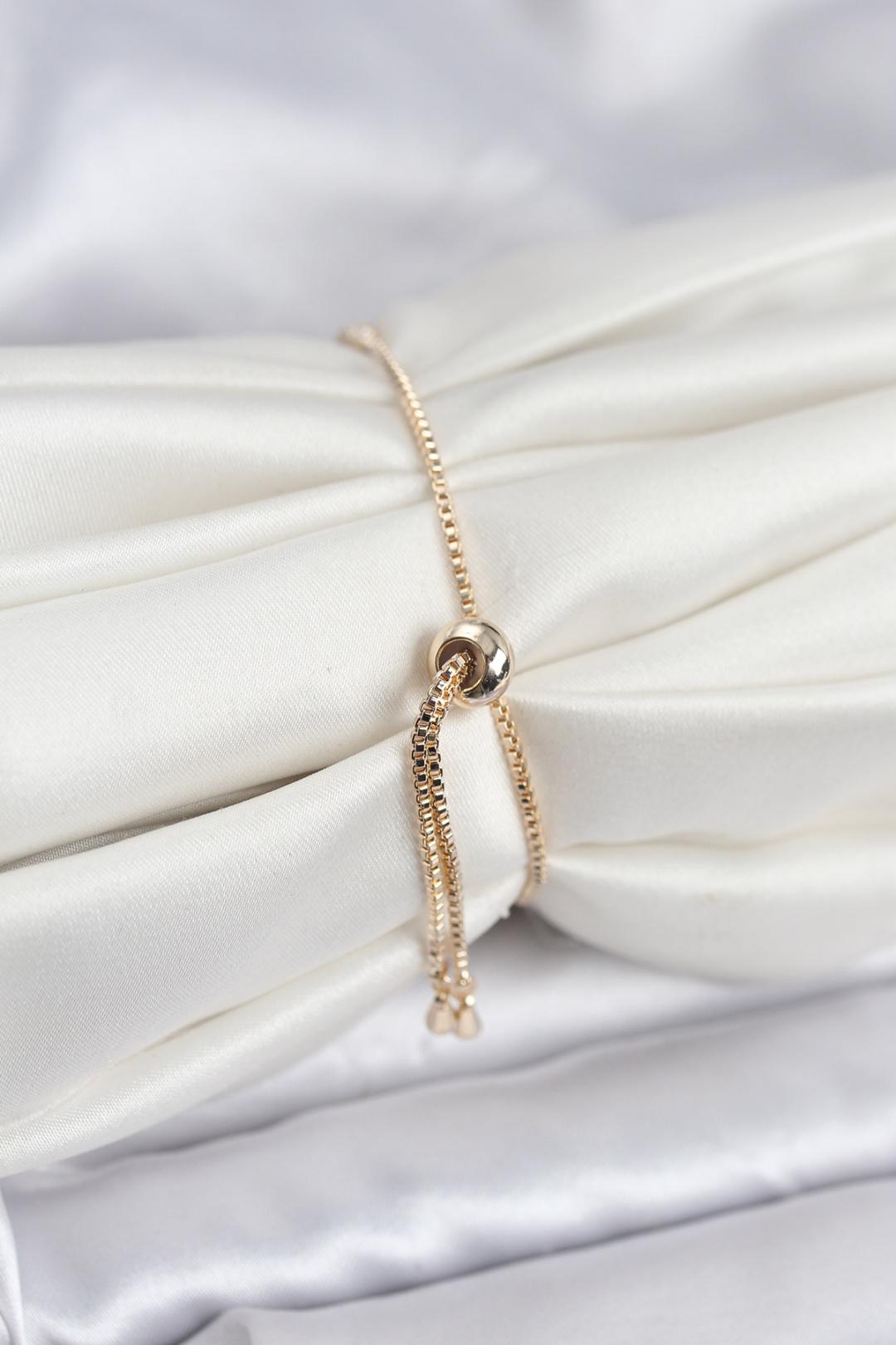 Gold Renk Zirkon Taşlı Sıralı Damla Model Asansörlü Kadın Bileklik