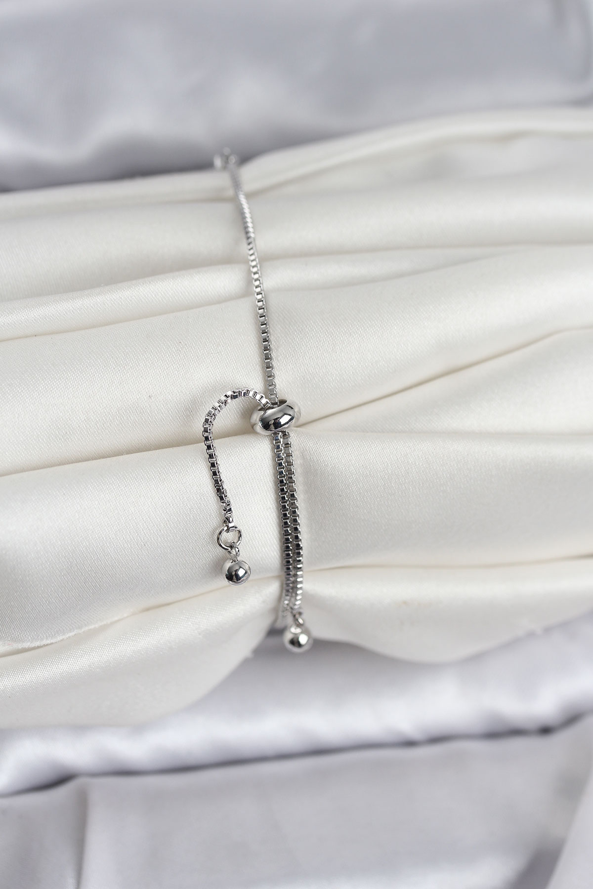Gümüş Renk Zincir Model Zirkon Taşlı Pirinç Asansörlü Kadın Bileklik