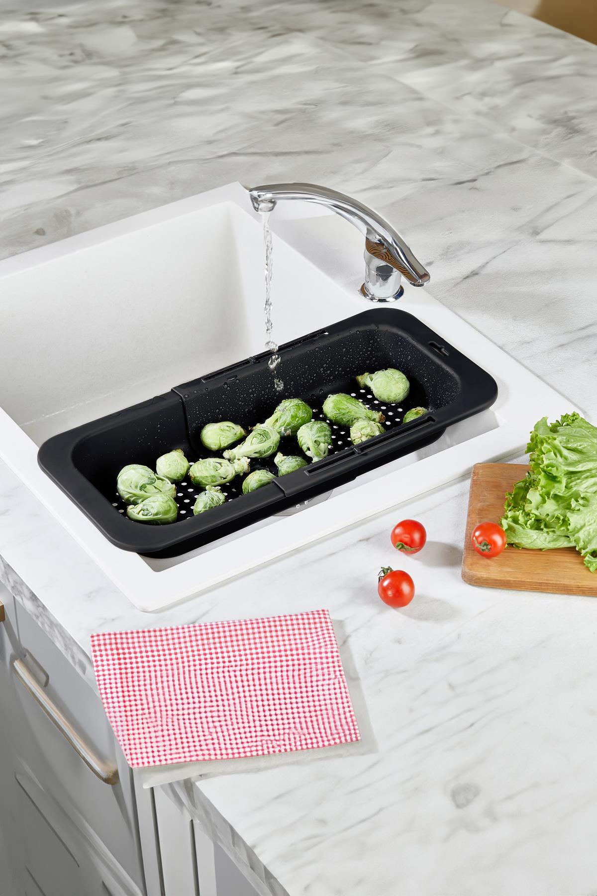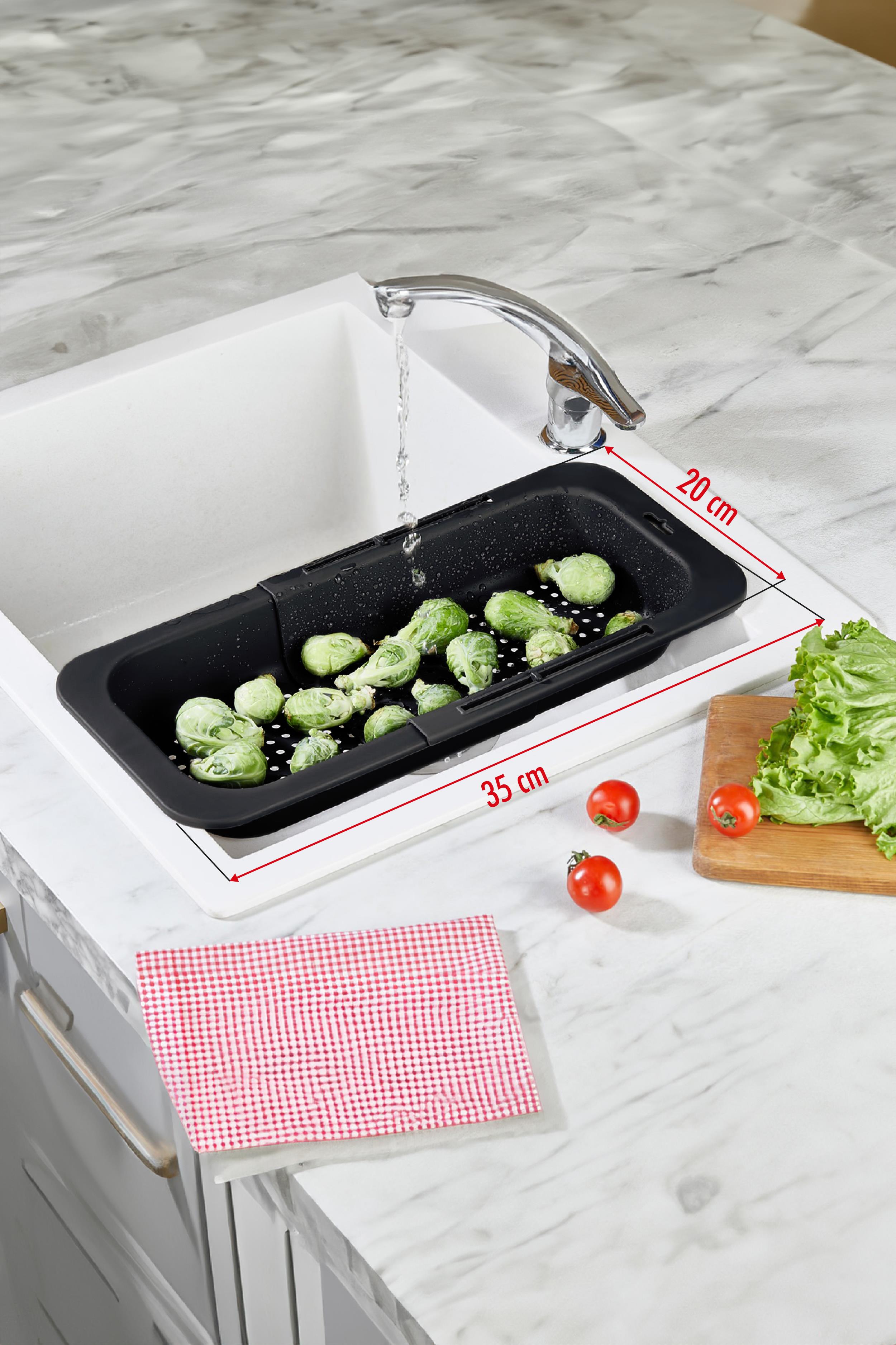 Lavoba İçi Sürgülü Açılır Kapanır Sebze Meyve Süzgeci Siyah (Açık 38,5 Cm Kapalı 34,50 Cm )