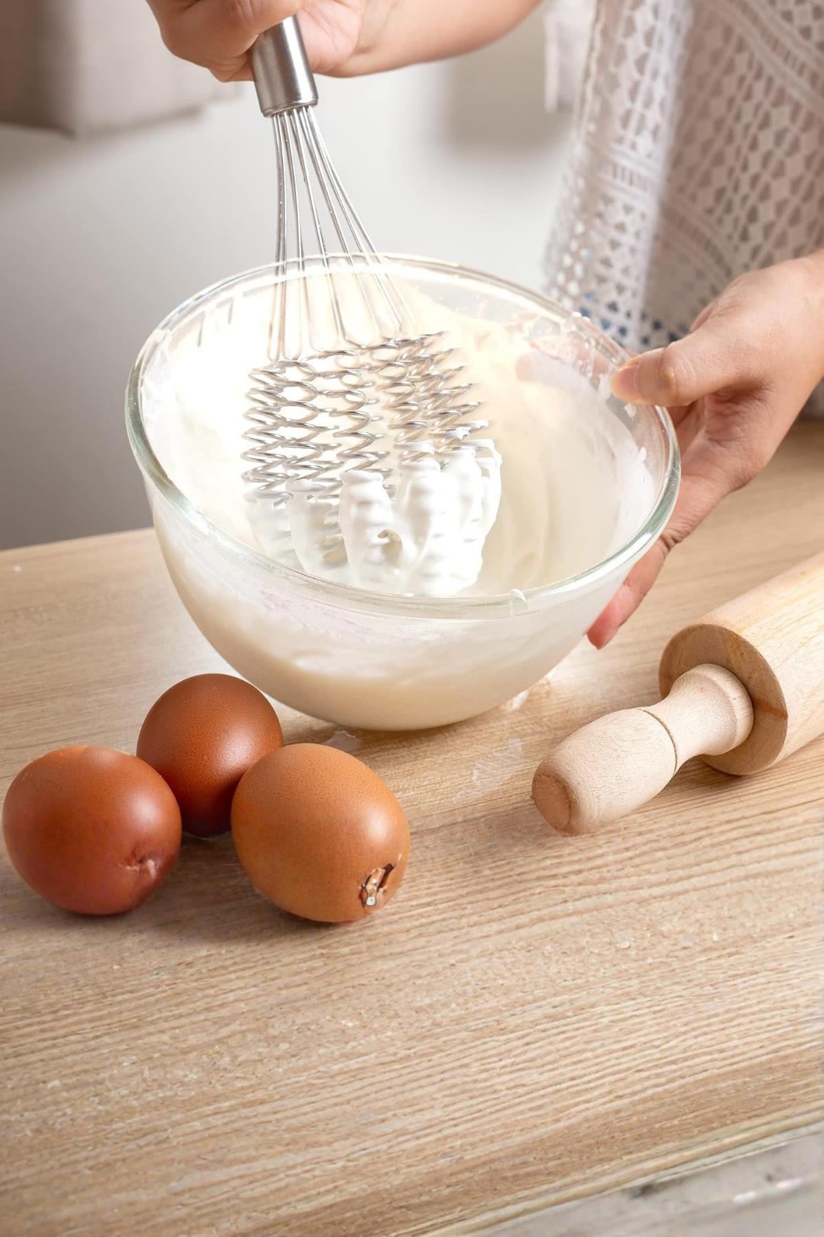 - Yenilikçi Örgülü Tasarım: Geleneksel çırpıcılardan farklı olarak daha fazla hava sirkülasyonu sağlar, bu sayede krema ve yumurta akı gibi karışımları çok daha hızlı kabartır.
