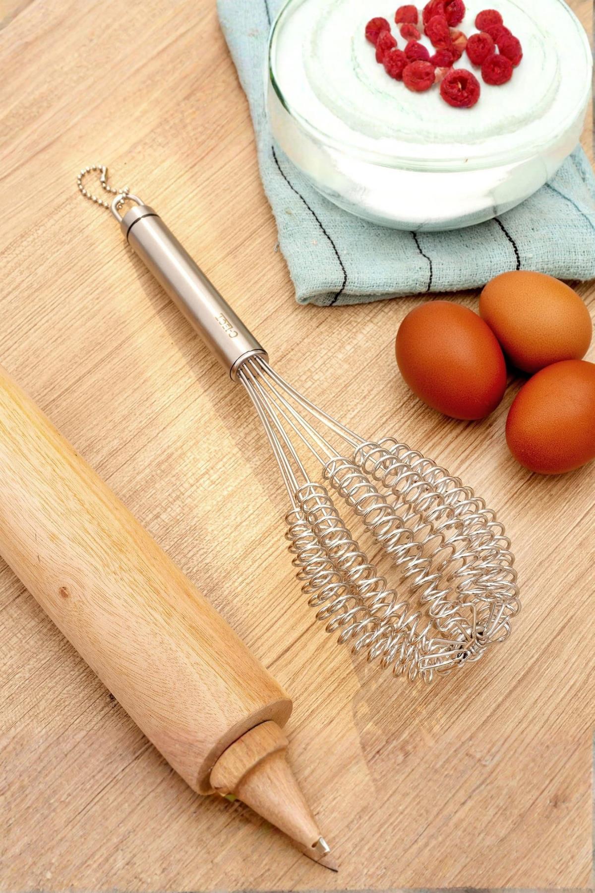 Mutfakta kusursuz kıvamlar yakalamak için tasarlanan bu lüks örgülü çırpıcı, özel yaylı yapısı sayesinde soslardan kek harçlarına kadar her karışımı saniyeler içinde pürüzsüz hale getirir.