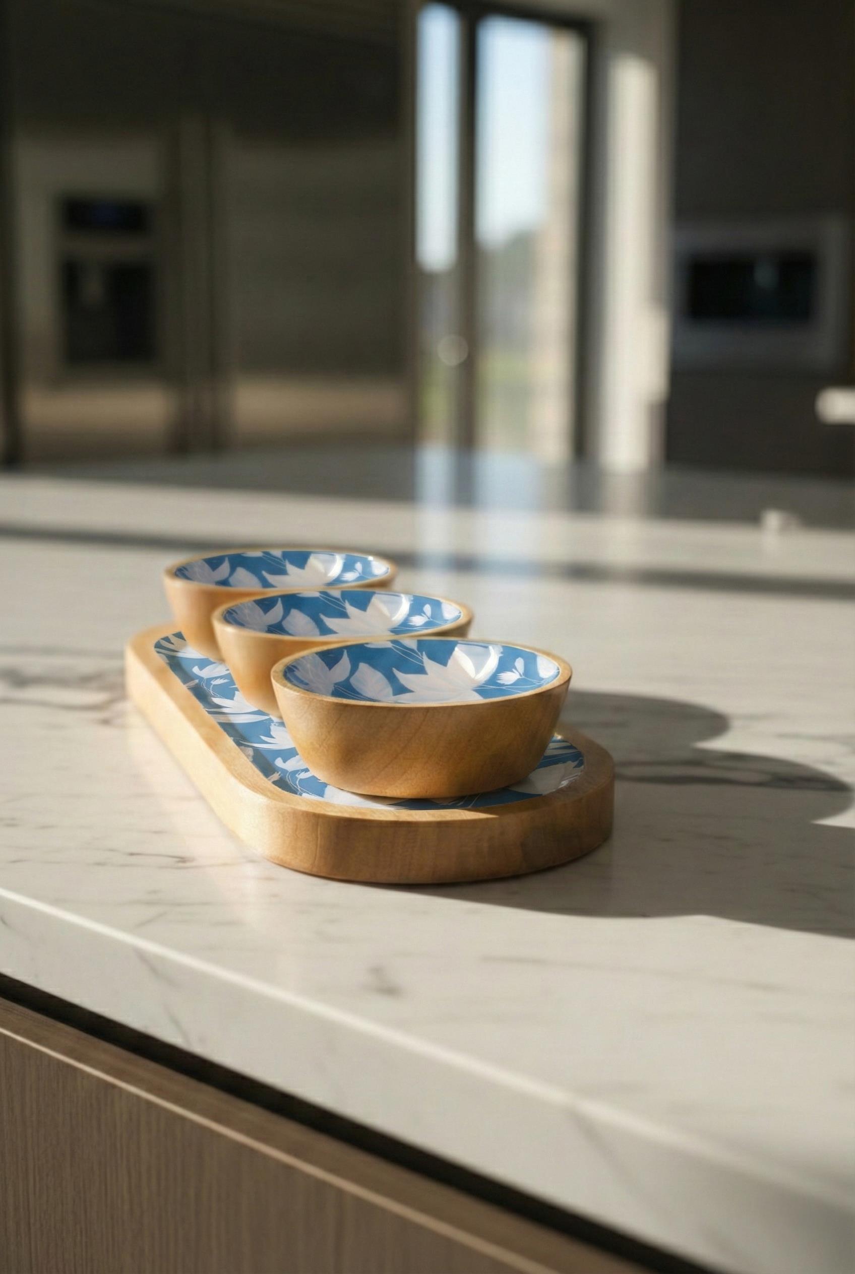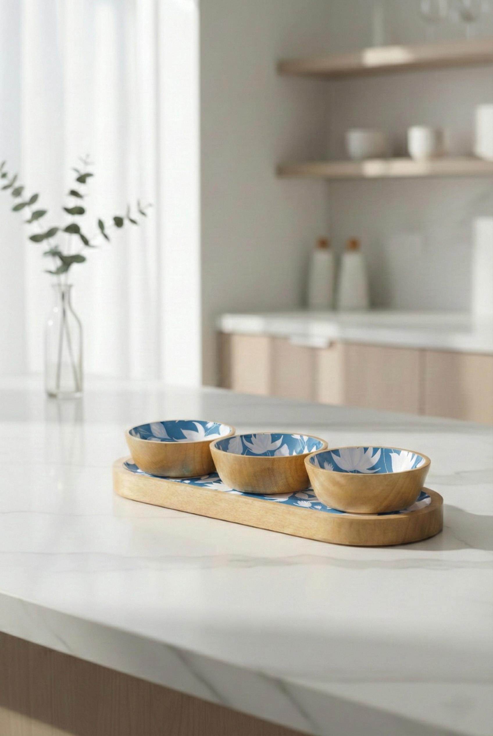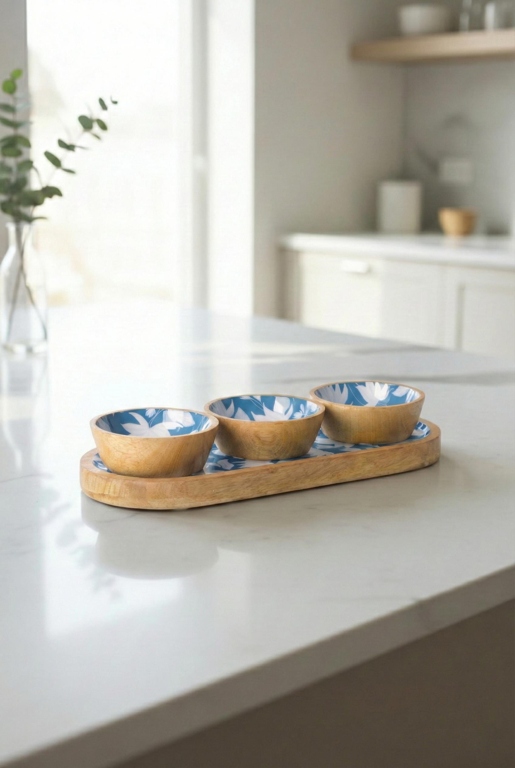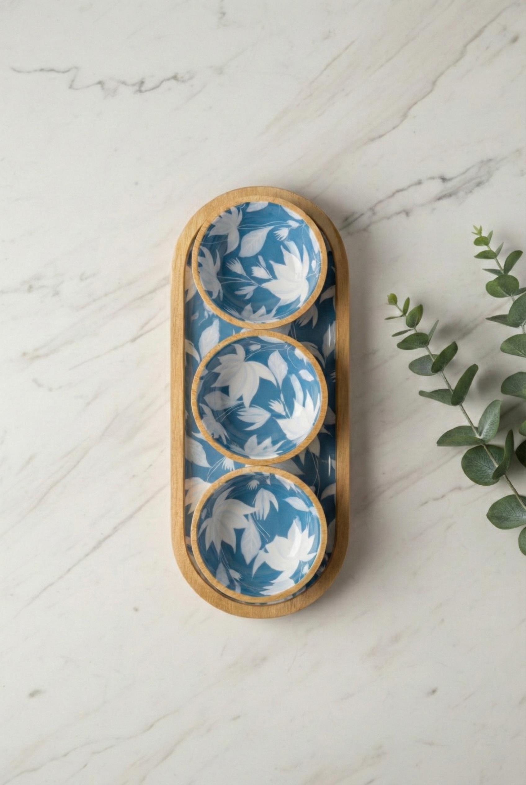 Mango Agacı Standlı Üçlü Kase Seti & Sunum Ve Servis Seti Desenli