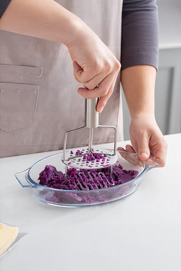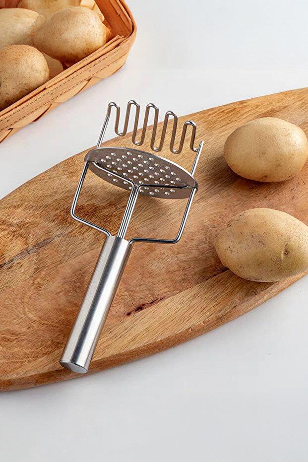Paslanmaz Çelik Saplı Patates Ezici & Pratik Sebze Püresi Hazırlama Gereci (23 cm)