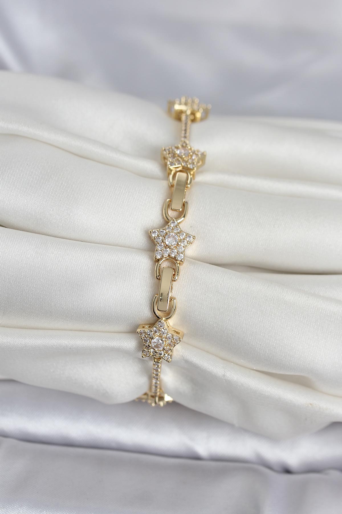 Pirinç Gold Renk Yıldız Model Zirkon Taşlı Kadın Bileklik