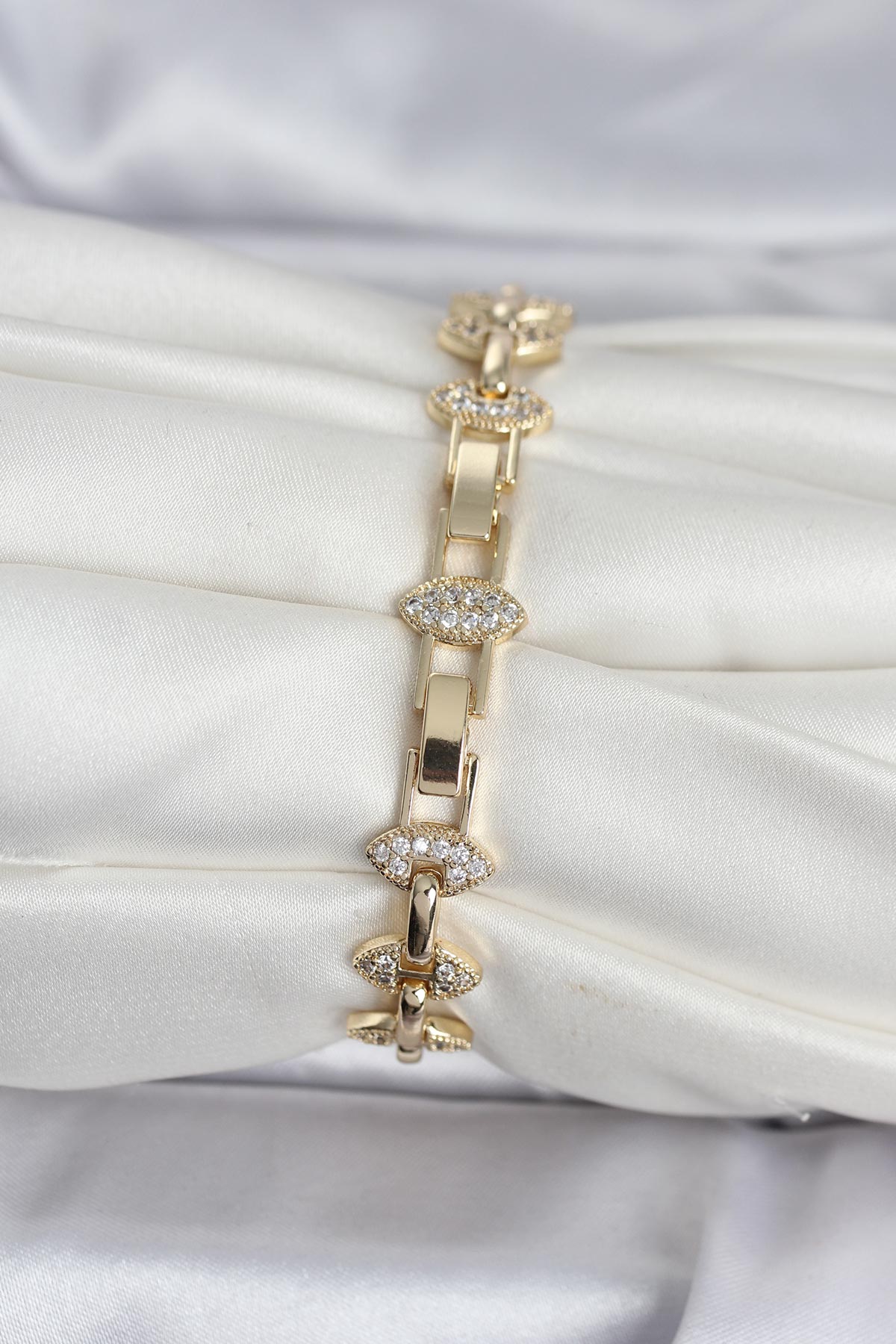 Pirinç Gold Renk Zirkon Taşlı Kadın Bileklik