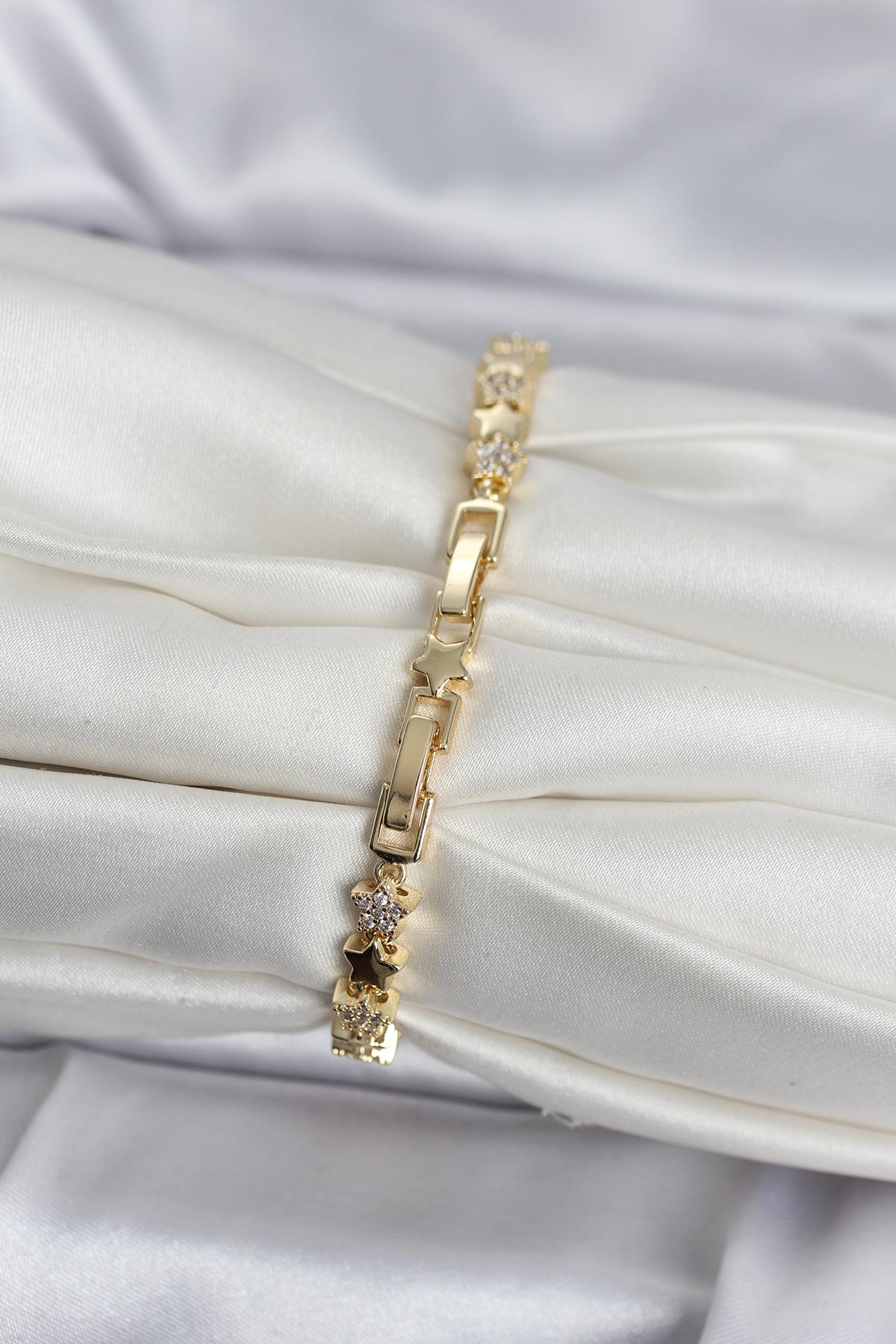 Pirinç Gold Renk Zirkon Taşlı Yıldız Model Kadın Bileklik