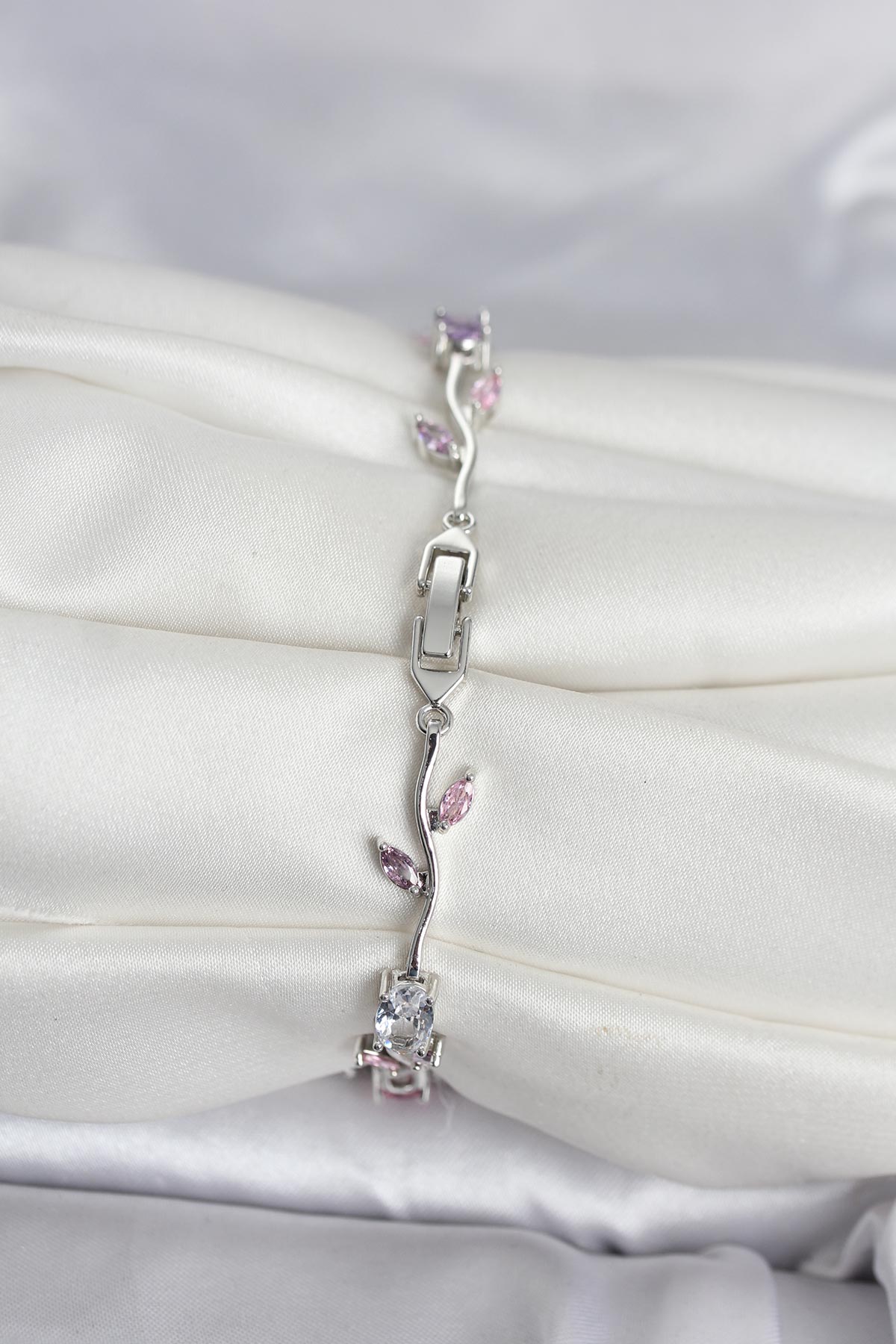 Pirinç Gümüş Renk Çiçek Sarmaşık Model Kadın Bileklik