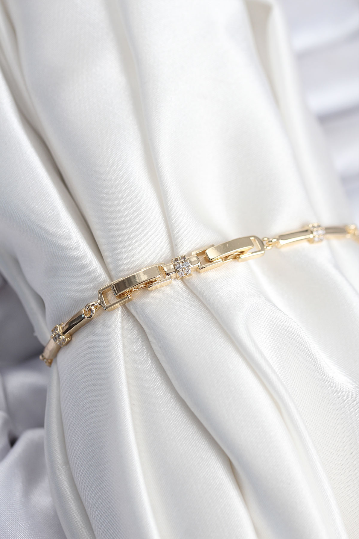 Pirinç VIP Seri Gold Renk Parçalı Model Zirkon Taşlı Kadın Bileklik