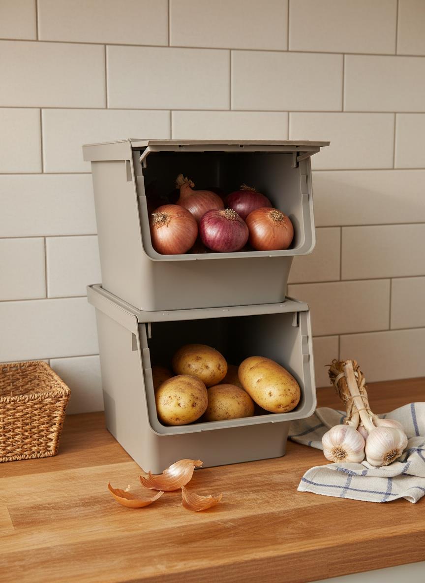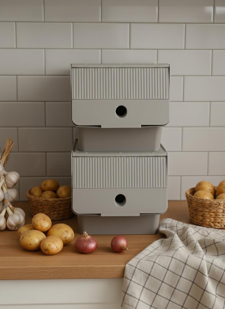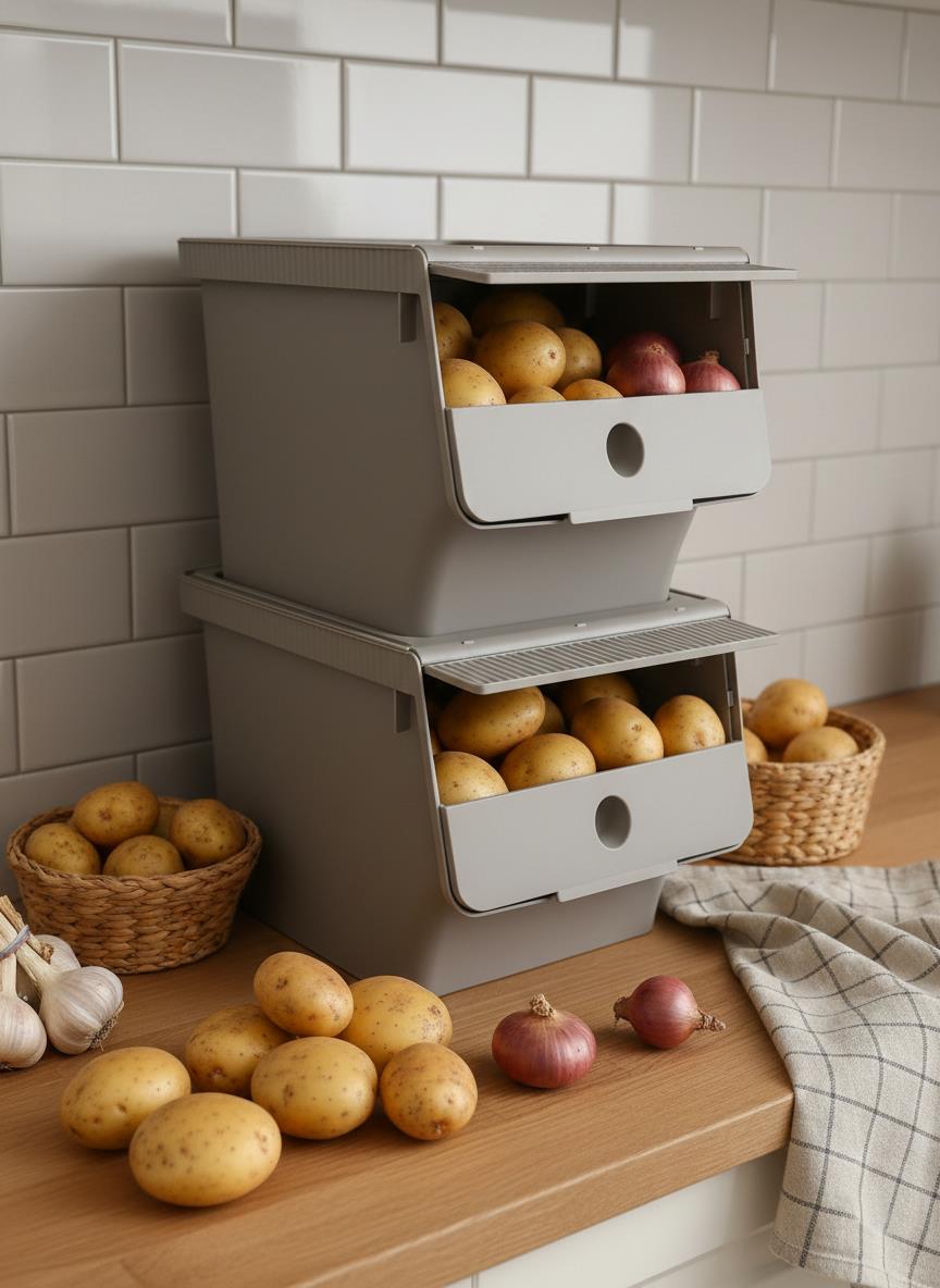 - Çok Amaçlı Kullanım: Patates ve soğan gibi sebzelerin yanı sıra bakliyat ve deterjan depolama için uygundur.